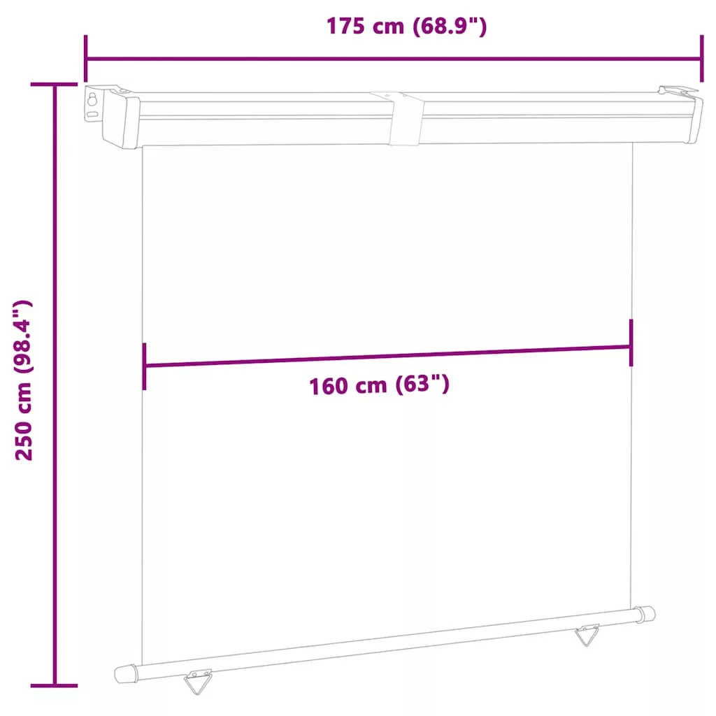 A napellenző UV- és szakadásálló poliészterből készült. Az alumínium henger sima gördülést biztosít. Önzáró funkcióval rendelkezik, így bárhol megállítható. Hosszúsága 250 cm-ig állítható. A napellenző az alsó háromszög alakú gyűrűk meghúzásával automatikusan visszatekeredik az acélkazettába. Ezenkívül ezt a függőleges erkély napellenzőt saját igényeinek megfelelően a falra vagy akár a mennyezetre is rögzítheti.