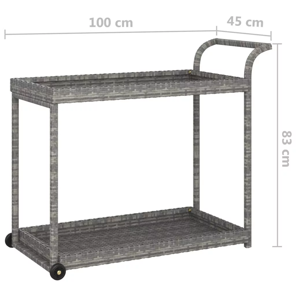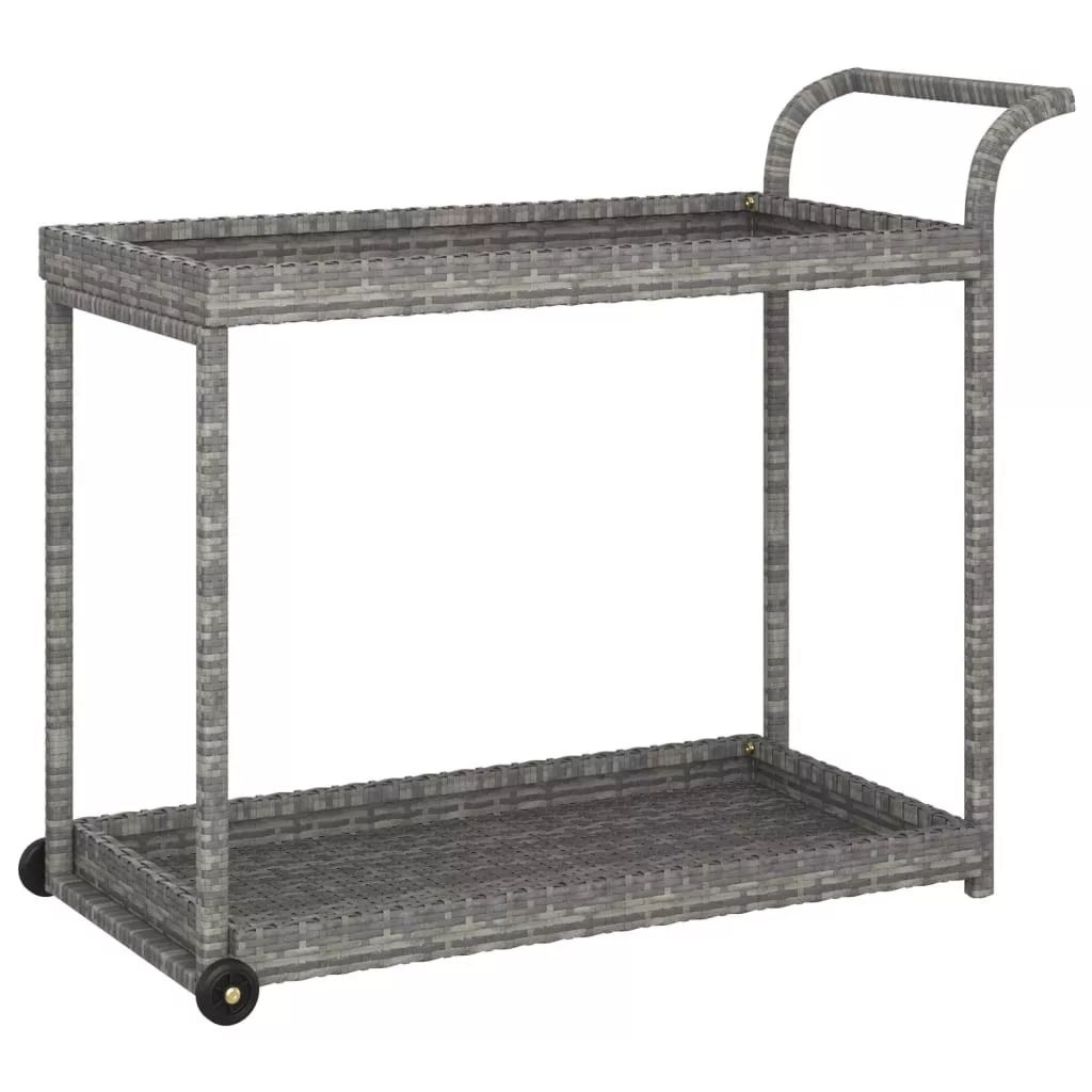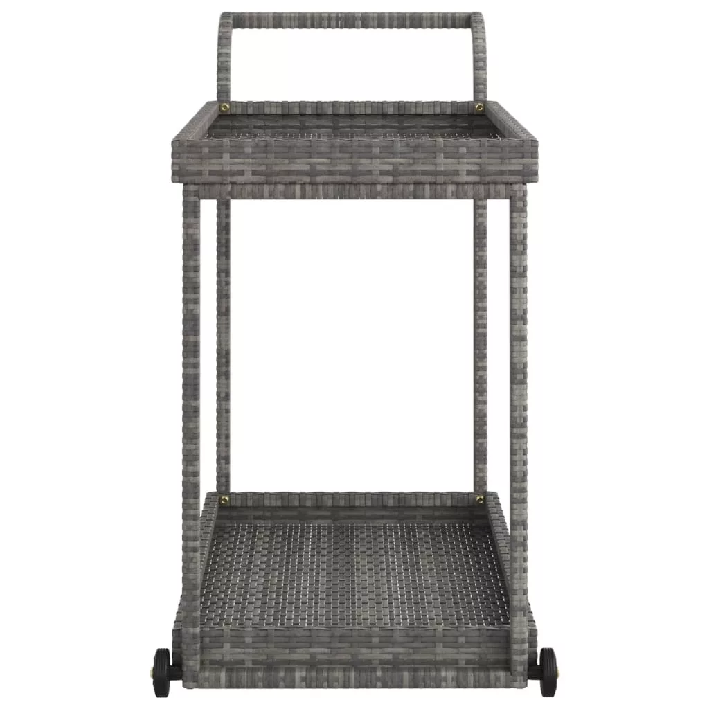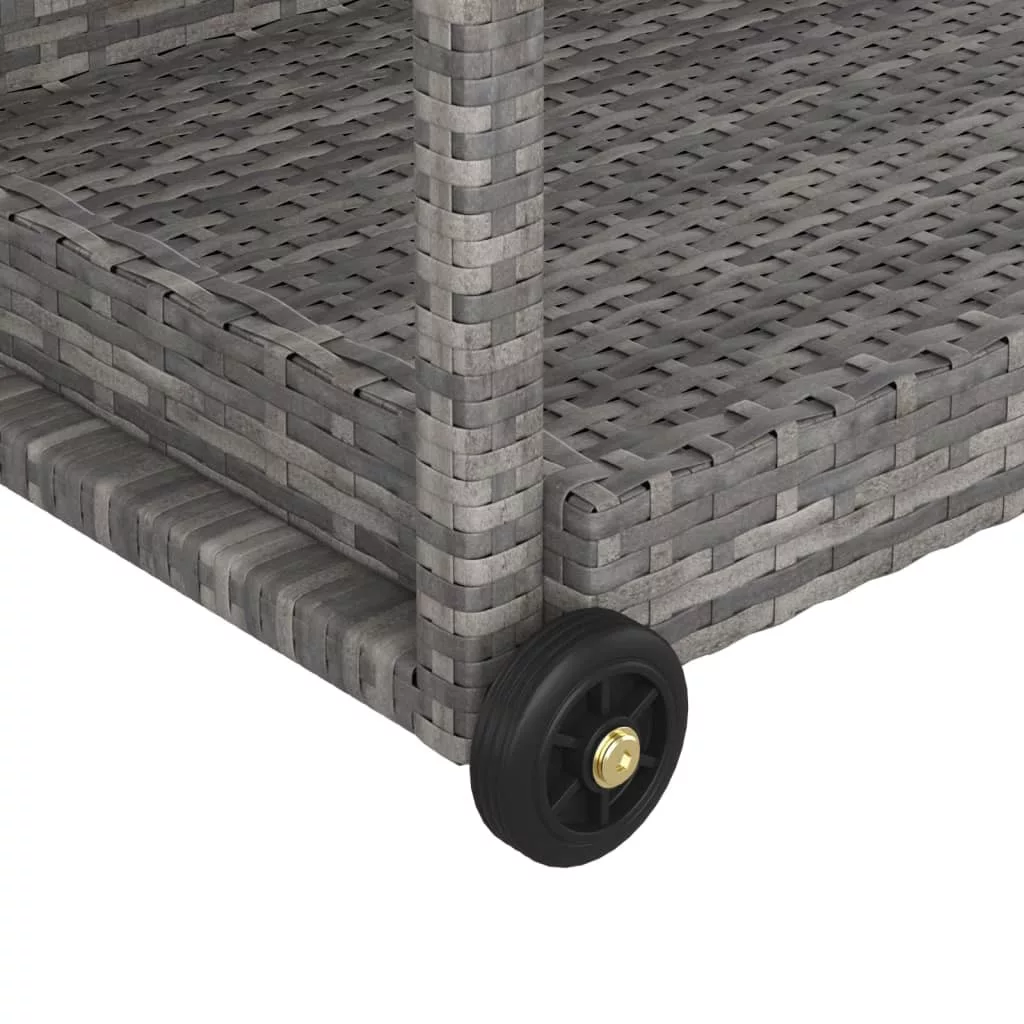 Ez a kocsi polirattanból készült, időjárásálló és kevés karbantartást igényel. Elegendő tárolóhelyet biztosít a gyümölcslevek, finom ételek, gyümölcsök stb. elhelyezésére. A porszórt acélváz stabilan és masszívan tartja a tálalókocsit. A tetején lévő fogantyúval könnyen tolható és húzható. A simán gördülő kerekeknek köszönhetően a kocsi könnyedén mozgatható.