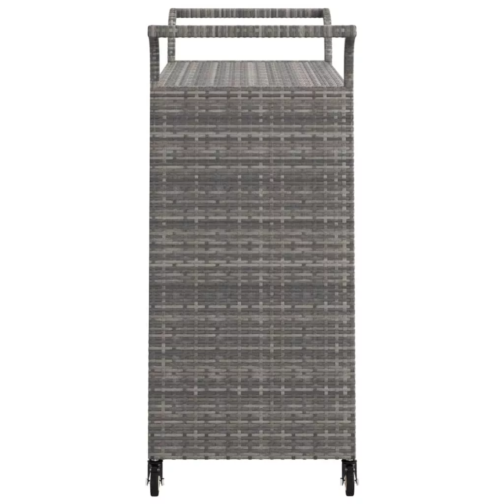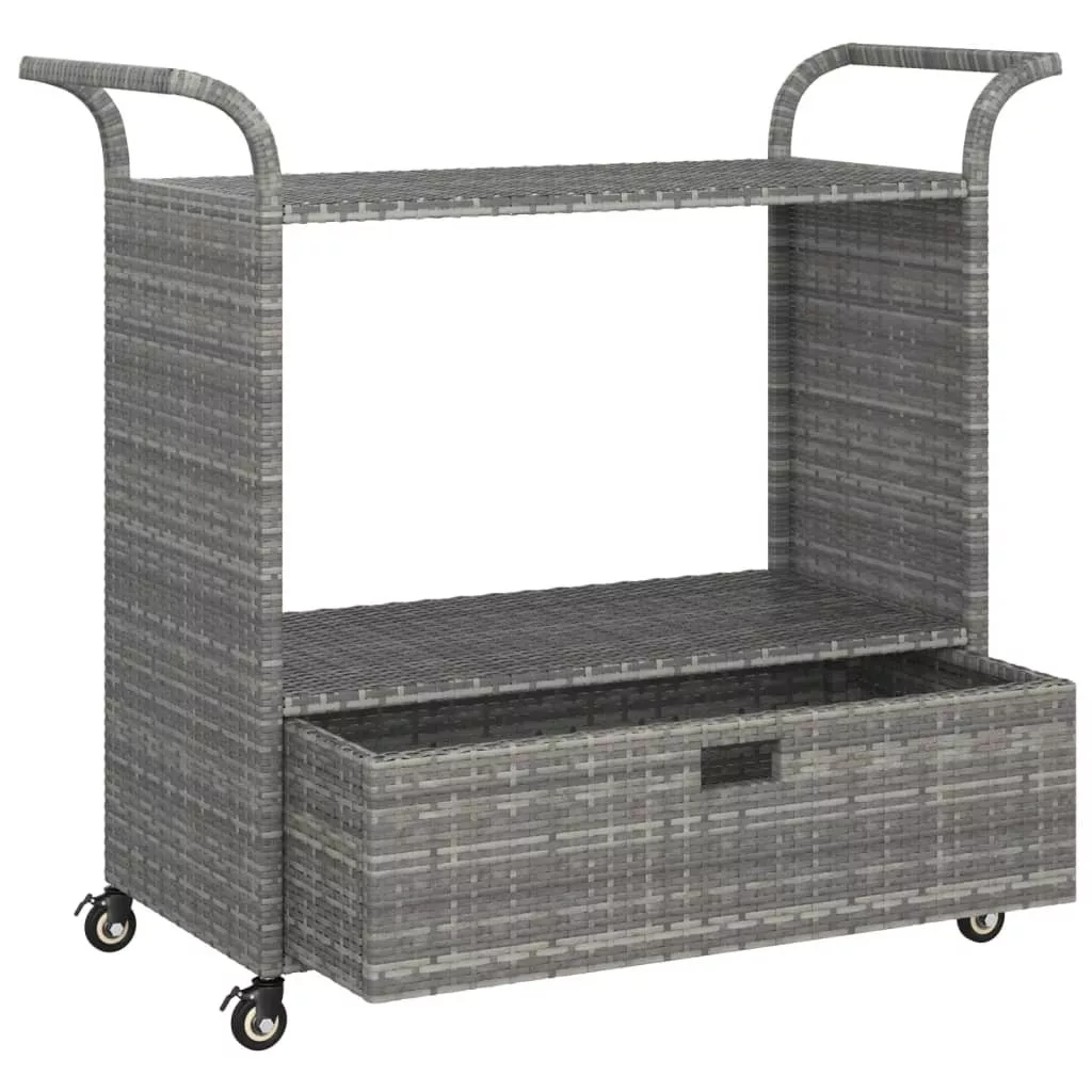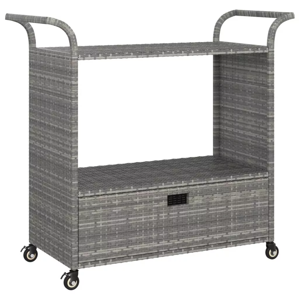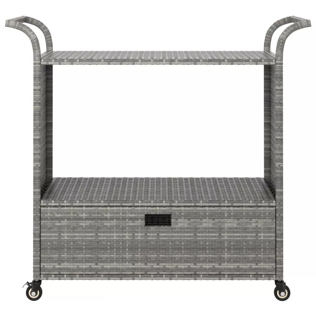 Ez a kocsi polyrattanból készült, időjárásálló és kevés karbantartást igényel. Alkalmas mindennapi használatra. A kerti kocsi egy fiókkal rendelkezik, hogy az ételek ne essenek a földre. A porszórt acél váznak köszönhetően a tálalókocsi stabil és masszív. A tetején lévő karral könnyen tolható és húzható. A simán gördülő kerekeknek köszönhetően a kocsi könnyedén mozgatható. Emellett a kerekek közül kettő zárfunkcióval rendelkezik, hogy a kocsi ne guruljon el.