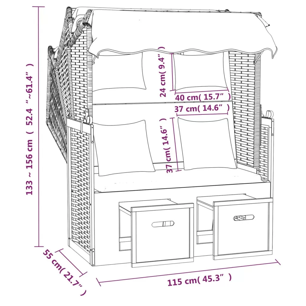 - Praktikus jellemzők: A napozóágy tetővel rendelkezik, amely megvédi Önt a naptól, az oldalpaneleknek köszönhetően pedig még szeles napokon is élvezheti a használatát.