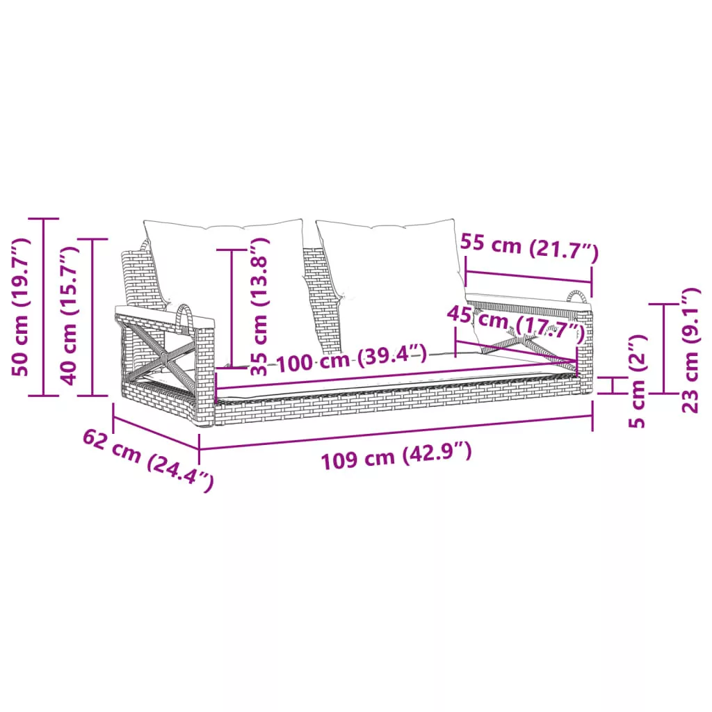 - Ülőfelület mérete: 100 x 45 cm (Szé x Mé)