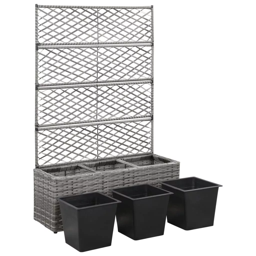 Ez a polyrattan magaságyás 3 kivehető kaspóval és beépített növényfuttató ráccsal lett ellátva. Természetes bájjal ruházza fel kertjét.
