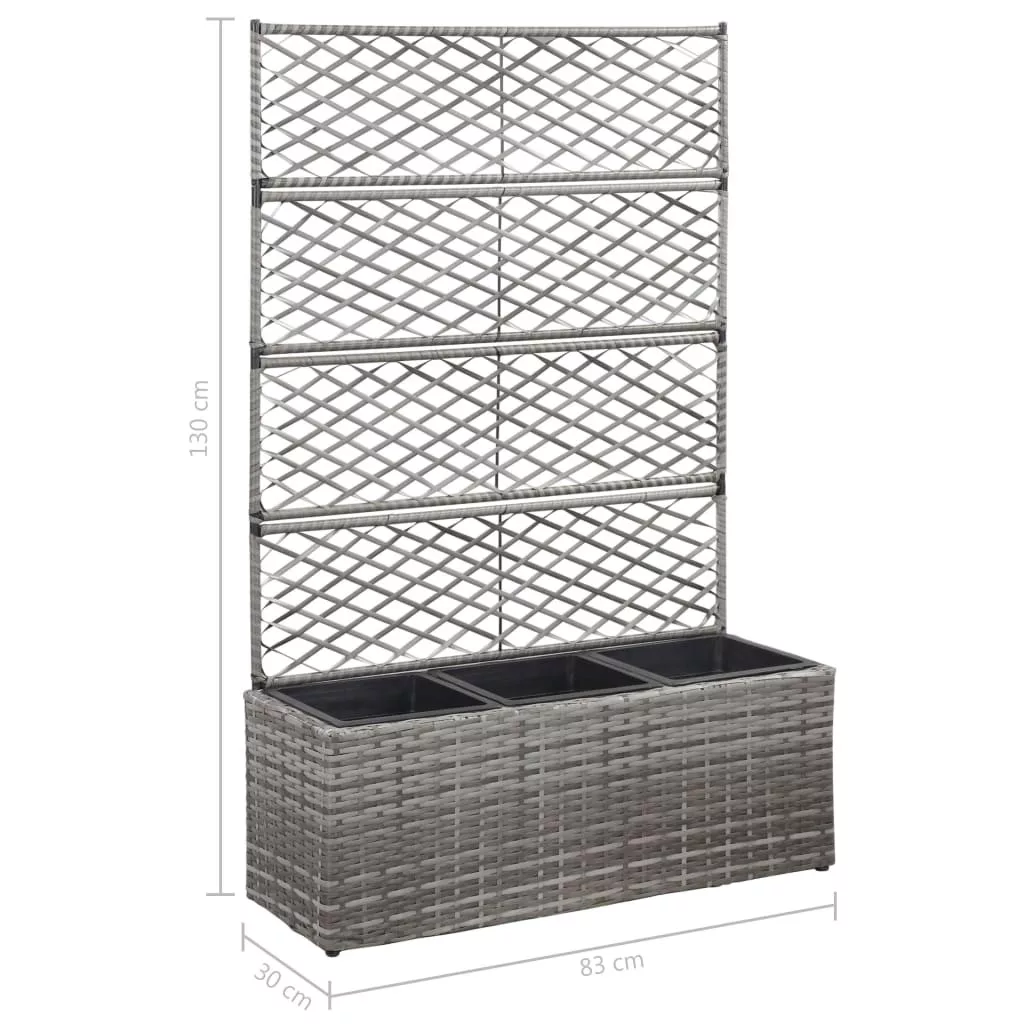 A rácsos virágtartó 3 nagy méretű kaspóval lett ellátva, melyben sok növény és virág fér el. A növényfuttató rács remekül megtartja a kúszónövényeket, és így rendkívül jól fog mutatni kertjében.