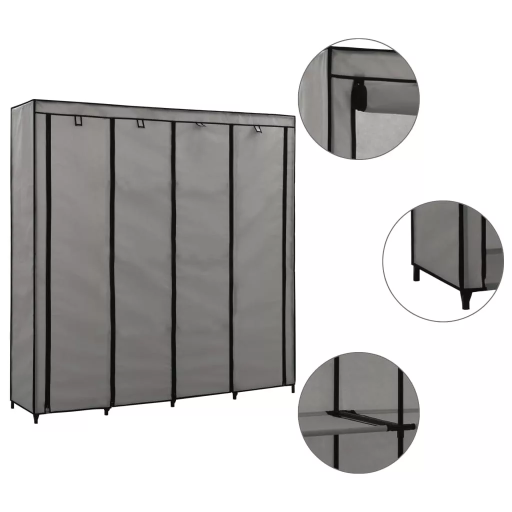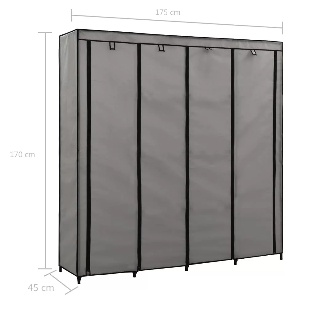vidaXL szürke ruhásszekrény 4 tárolórekesszel 175 x 45 x 170 cm