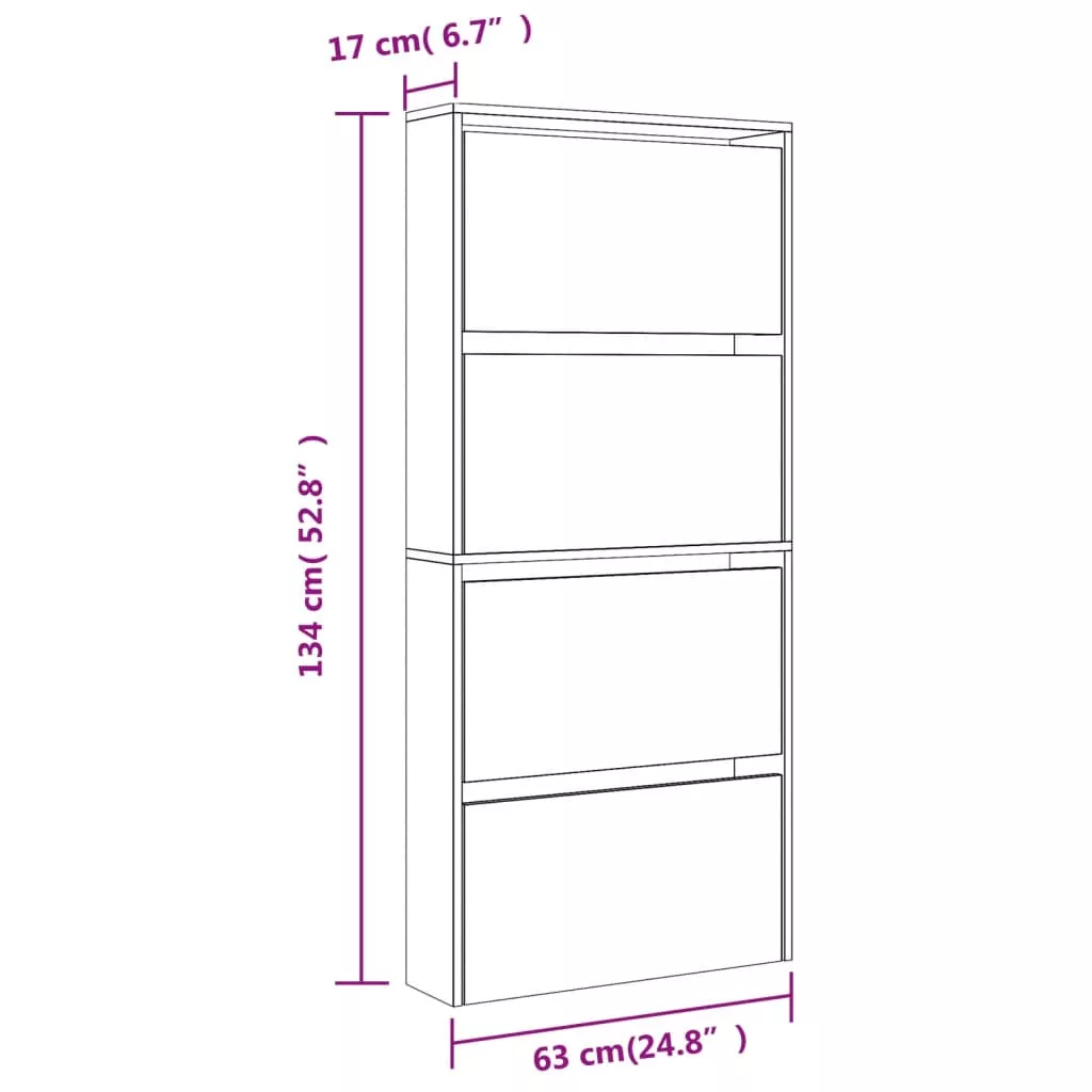 Ez a 4 szintes modern és stílusos kialakítású cipőszekrény kiváló bútor a cipők szervezett tárolásához. Alkalmas bejárathoz, folyosóra, nappaliba, hálószobába vagy bárhova, ahova helyezni szeretné.