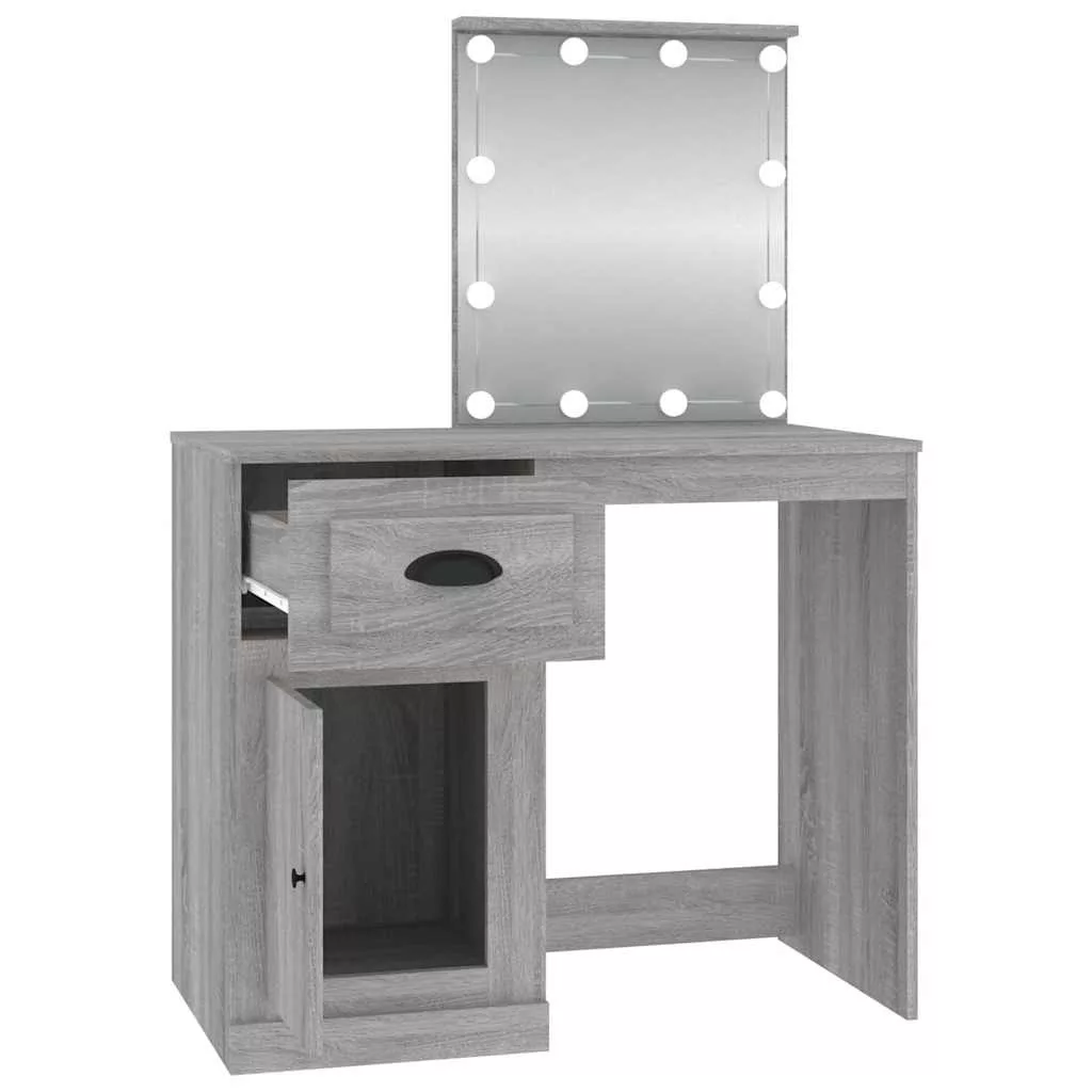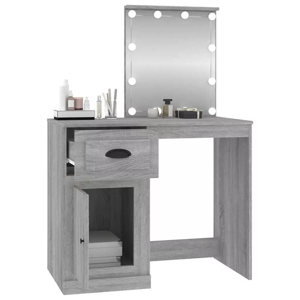vidaXL szürke sonoma szerelt fa pipereasztal LED-del 90x50x132,5 cm