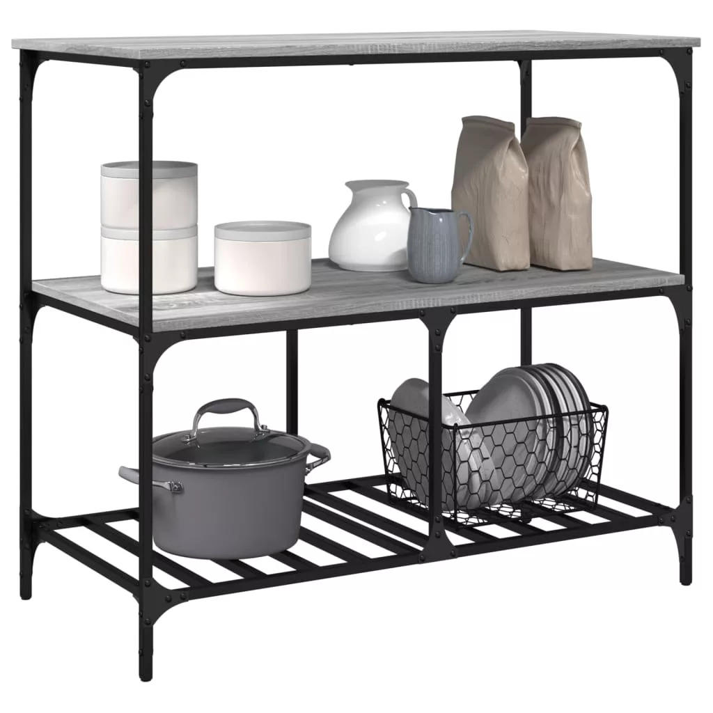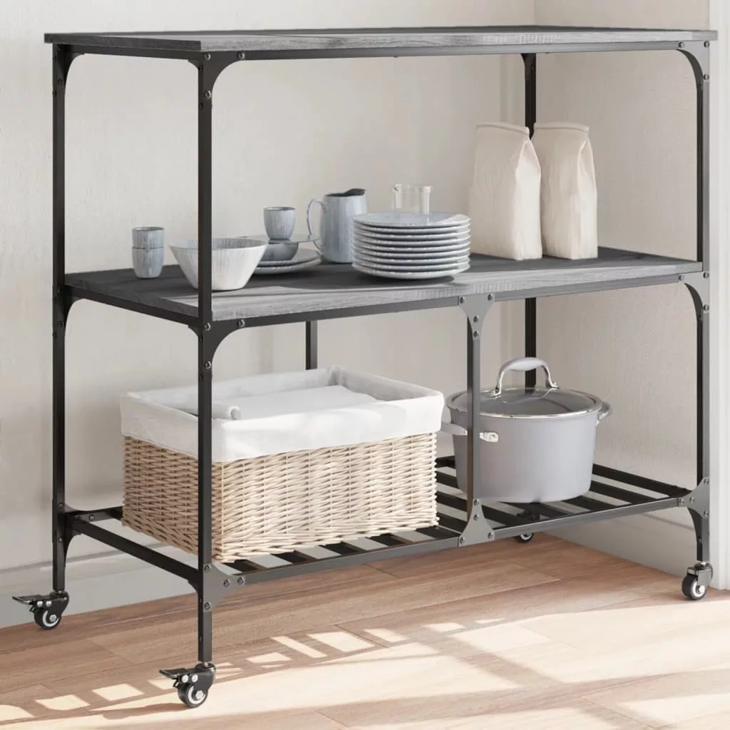vidaXL szürke sonoma szerelt fa zsúrkocsi 100 x 50 x 95 cm
