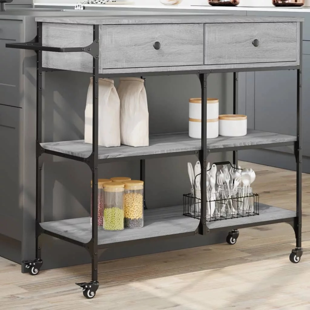 vidaXL szürke sonoma szerelt fa zsúrkocsi 105 x 42 x 95 cm