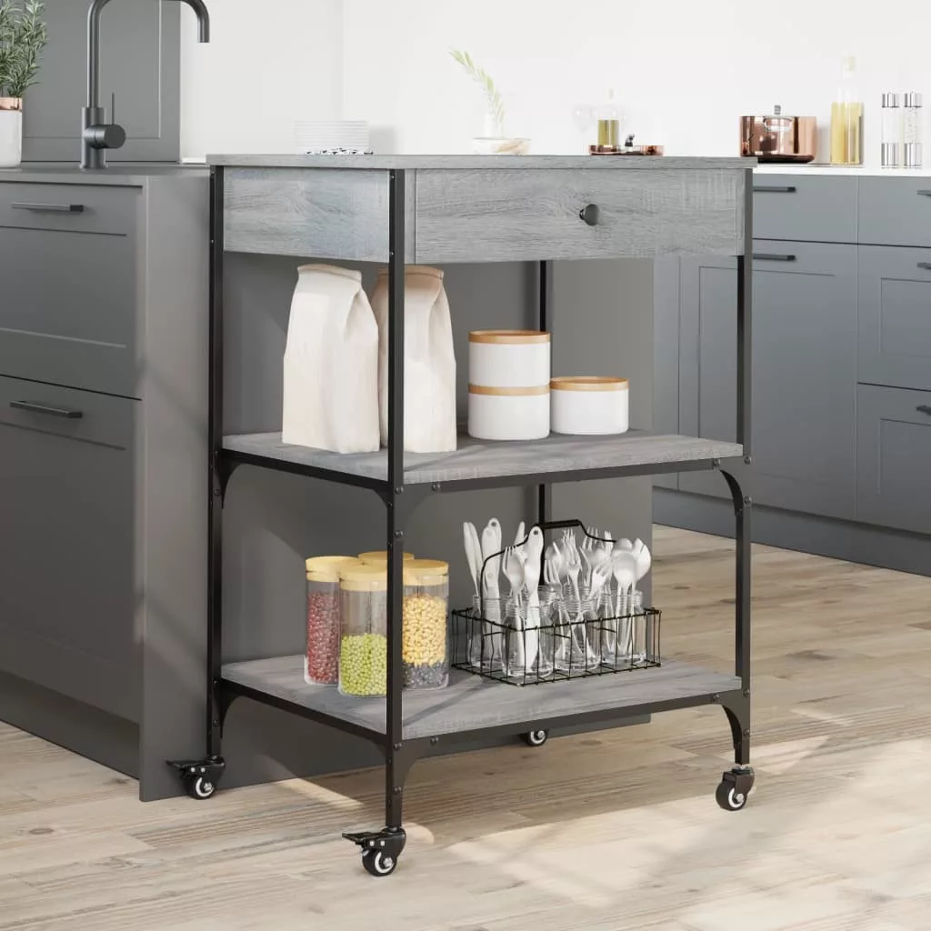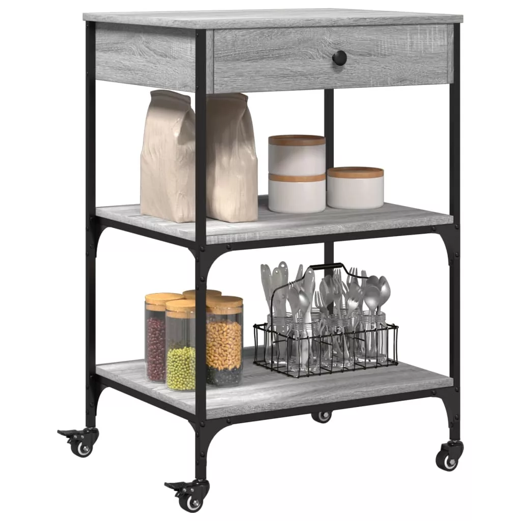 vidaXL szürke sonoma szerelt fa zsúrkocsi 60 x 48 x 89,5 cm