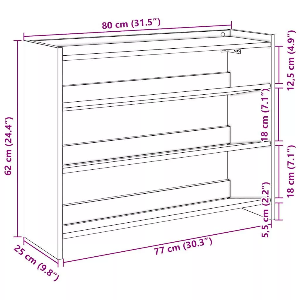 - Bőséges tárolóhely: A cipőtartó polcai elegendő helyet biztosítanak a cipők tárolásához. Ezzel a praktikus cipőtárolóval nem fog többé bosszankodni azon, hogy a lábbelik elfoglalják az egész padlót.