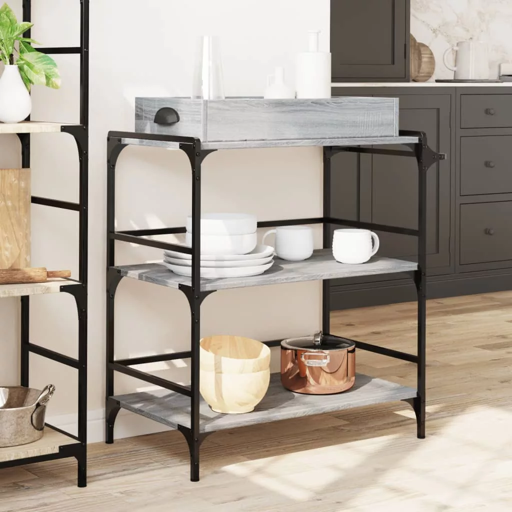- Bőséges tárolóhely: Ez a zöldséges kocsi rengeteg helyet kínál az ételek, tálak, tányérok, receptek, és egyéb konyhai eszközök tárolásához. Az oldalán található konyharuhatartónak köszönhetően kéznél lesznek a konyharuhák.