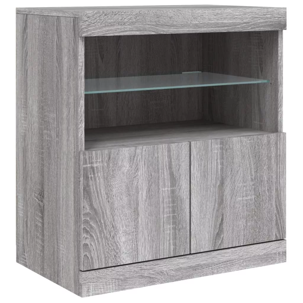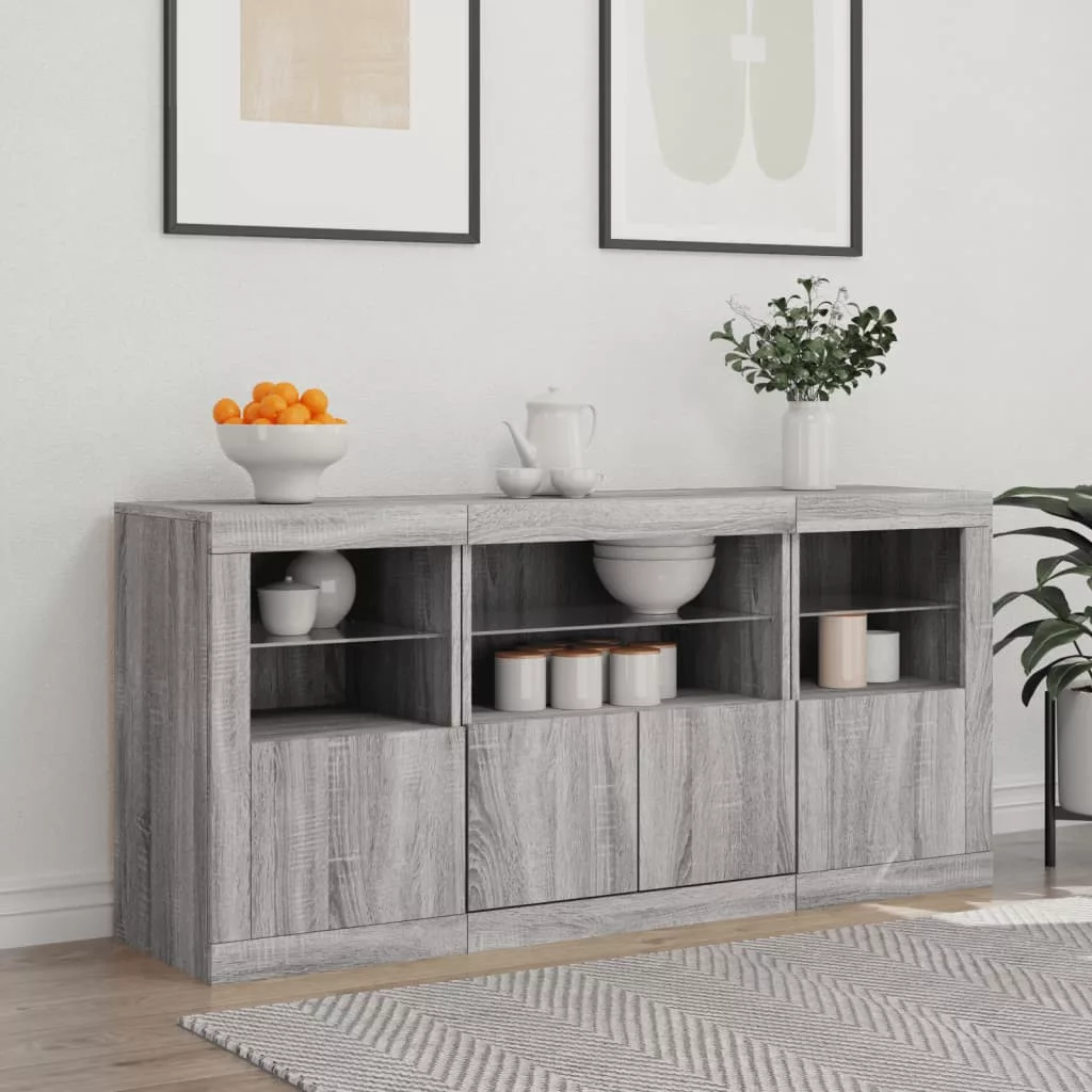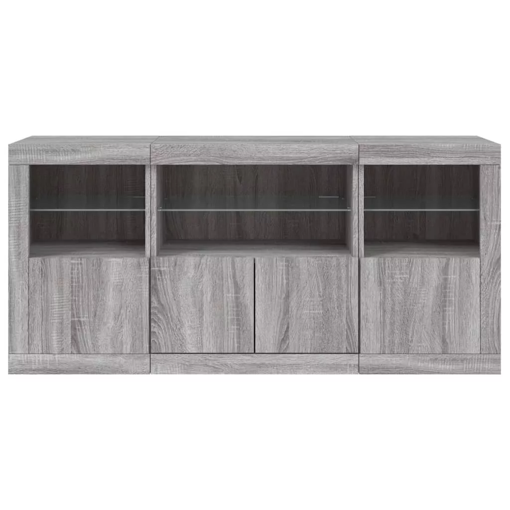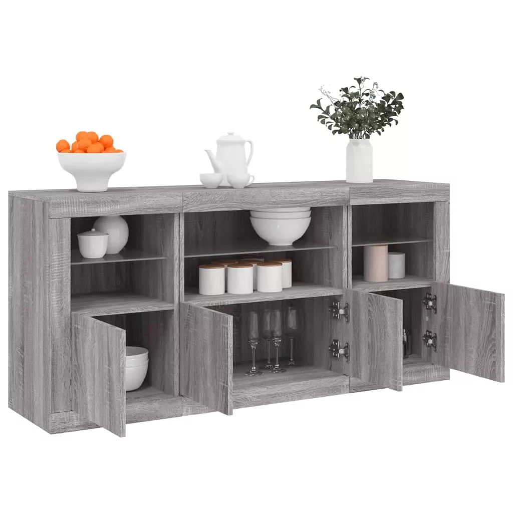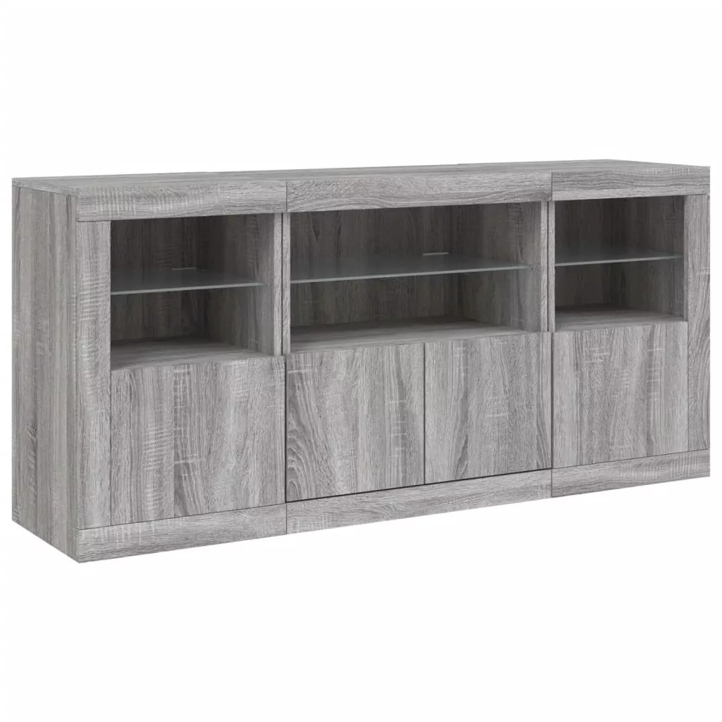 vidaXL szürke sonoma tálalószekrény LED-világítással 142,5x37x67 cm