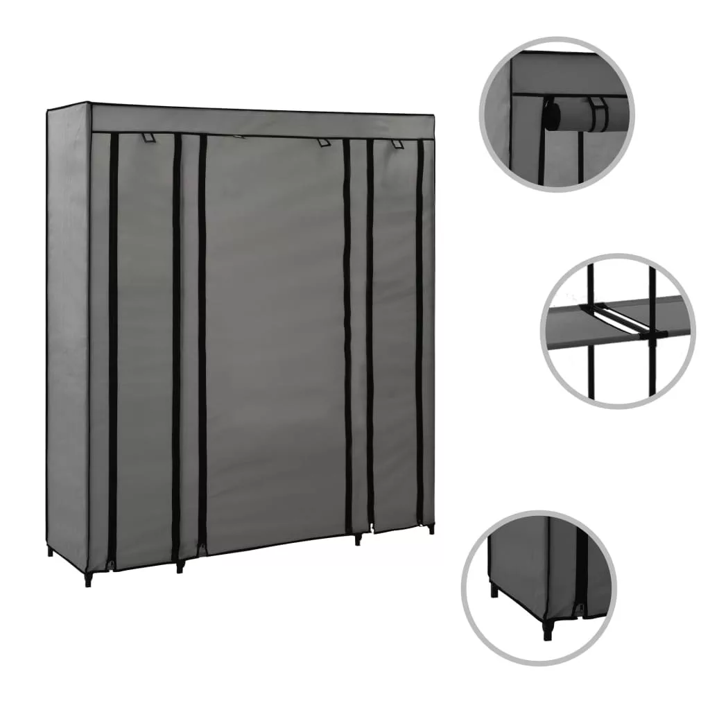 vidaXL szürke szövet ruhásszekrény tárolórekeszekkel 150 x 45 x 176 cm