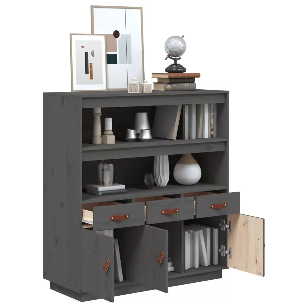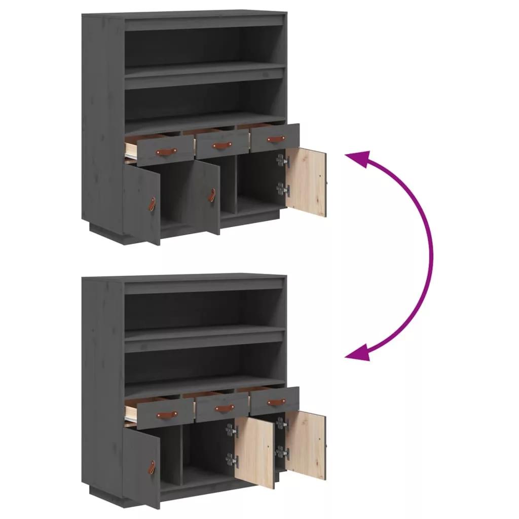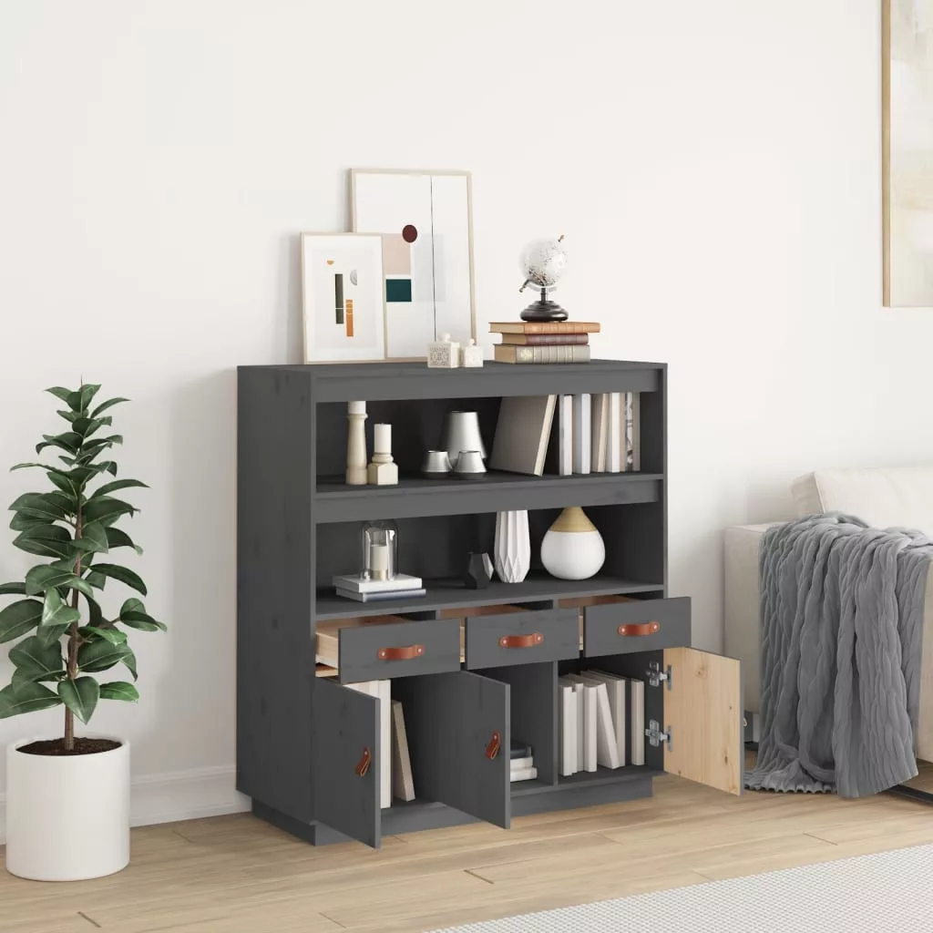 vidaXL szürke tömör fenyőfa magasszekrény 100 x 40 x 108,5 cm