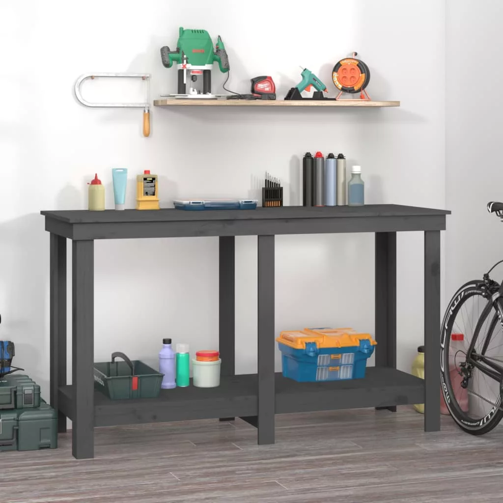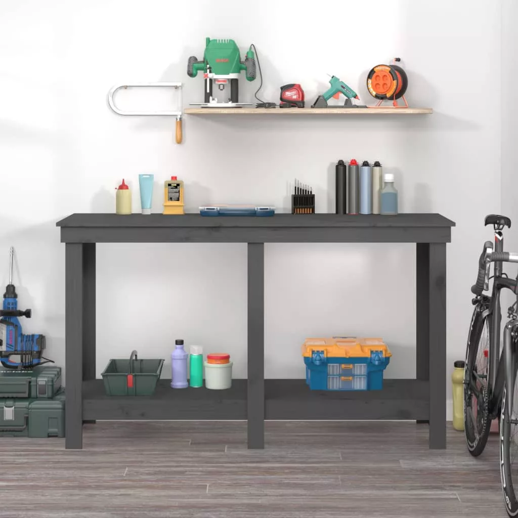 vidaXL szürke tömör fenyőfa munkapad 140 x 50 x 80 cm