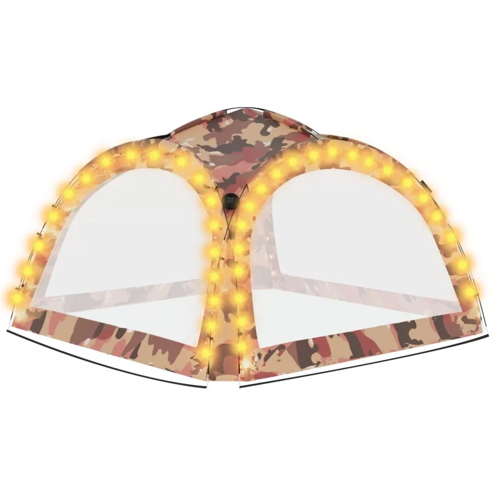 A rendezvénysátor 100% PA bevonatú poliészter anyagból készült, így UV álló. A váz robusztus üvegszálból készült, ezért ellenáll a rozsdának és könnyű is. A négy mellékelt "szúnyogháló" oldalfal ideális védelmet nyújt mindenféle rovar ellen. Cipzárral lettek ellátva, így pillanatok alatt rögzíthetők. Ezenkívül a 96 LED-es világítás kézzel is egyszerűen ki-be kapcsolható, a mellékelt napelemmodul pedig nappal tölti a beépített akkumulátort.
