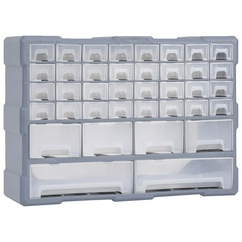 Ez a tárolóegység 32 kis fiókot, 4 közepes fiókot és 2 nagy fiókot tartalmaz az Ön különféle igényeinek kielégítésére. A kéziszerszámokat és a kiegészítőket, például a rögzítőket, rendezetten és kézközelben tárolhatja. A szerszámszekrény ütésálló műanyagból készült, így egyaránt tartós és stabil. A fiókok azonban átlátszó műanyagból készültek, így gyorsan azonosítható a tartalmuk. A szerszámdoboz ideális anyák, csavarok, szegek, általános kellékek és alkatrészek tárolására.