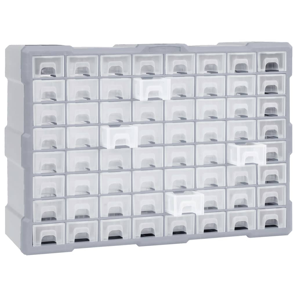Ez a nélkülözhetetlen 64 fiókos szervező a legkülönfélébb tárgyak rendezett tárolására szolgál. Varróeszközök vagy szögek tárolására is használható.