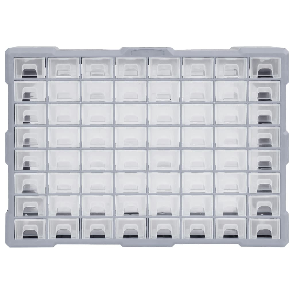 Ez a tárolóegység 64 kis fiókot tartalmaz, amelyekben rendezetten és kézközelben tárolhatja a kéziszerszámokat és a kiegészítőket, például a rögzítőket. A szerszámszekrény ütésálló műanyagból készült, így egyaránt tartós és stabil. A fiókok azonban átlátszó műanyagból készültek, így gyorsan azonosítható a tartalmuk. A szerszámdoboz ideális anyák, csavarok, szegek, általános kellékek és alkatrészek tárolására.