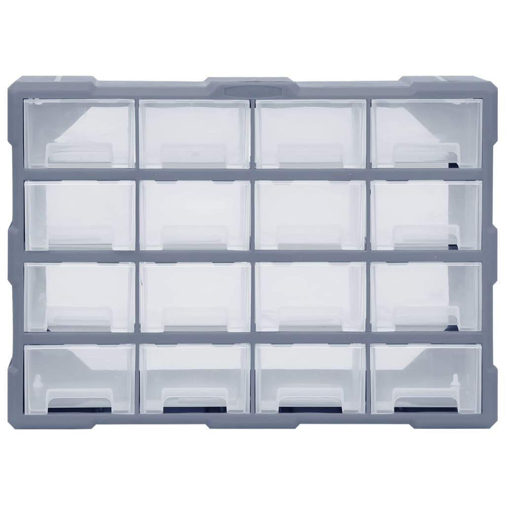 Ez a tárolóegység 16 közepes méretű fiókot tartalmaz a napi igényeinek kielégítésére. Rendezetten és kézközelben tárolhatja benne a kéziszerszámokat és a kiegészítőket, például a kapcsokat. A szerszámszekrény ütésálló műanyagból készült, így egyaránt tartós és stabil. A fiókok azonban átlátszó műanyagból készültek, így gyorsan azonosítható a tartalmuk. A szerszámdoboz ideális anyák, csavarok, szegek, általános kellékek és alkatrészek tárolására.