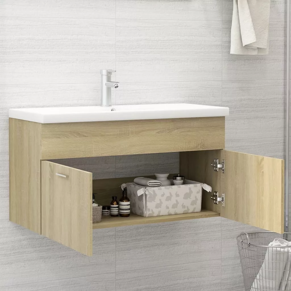 A szekrény szerelt fából készült, így masszív és stabil. A tárolószekrény 1 rekesszel és 2 ajtóval rendelkezik, így bőséges helyet kínál a fürdőszobában lévő holmik tárolására. Tökéletesen elfér a mosdókagyló alatt, és igen kényelmessé teszi a fürdőszobai tárolást. A kerámiából készült mosdó nemcsak mindennapi használatra alkalmas, de díszként is szolgálhat otthonában. Trendteremtő és kortárs kialakításának köszönhetően ez a mosdókagyló minden bizonnyal bármilyen dekorációhoz illik. Túlfolyóval is rendelkezik, hogy kifolyjon a víz, ha a mosdó túlságosan megtelik. Mázas felülete modern, mégis elegáns megjelenést kölcsönöz. Emellett a szekrény és a mosdó nedves ruhával könnyen tisztítható.
