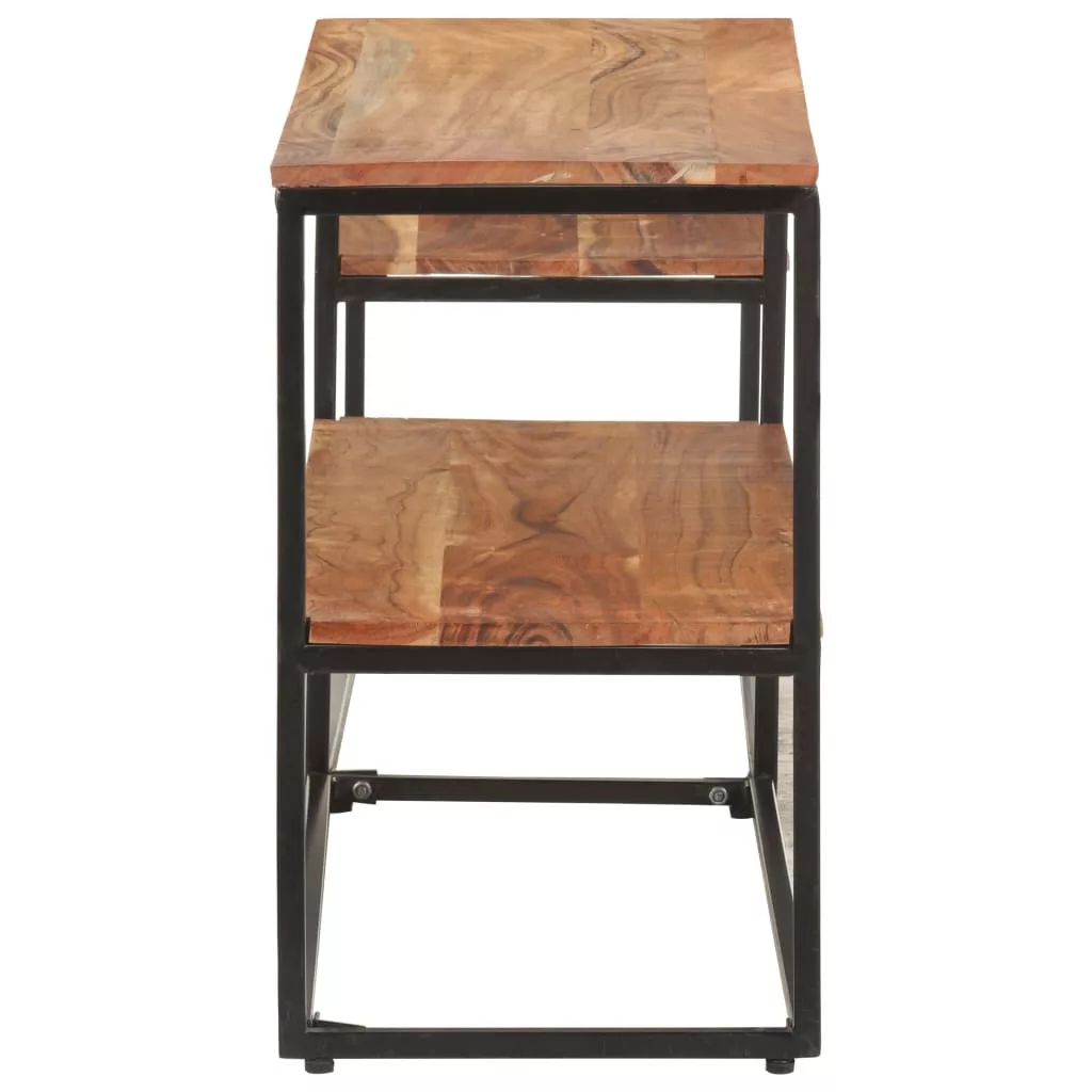 A sztereószekrény tömör akácfából, egy sűrű erezetű keményfából készült, így stabil és tartós. Az acélváz extra stabilitást biztosít. A médiaegység három polca bőséges helyet biztosít multimédiás eszközök, könyvek és különféle egyéb tárgyak tárolásához.