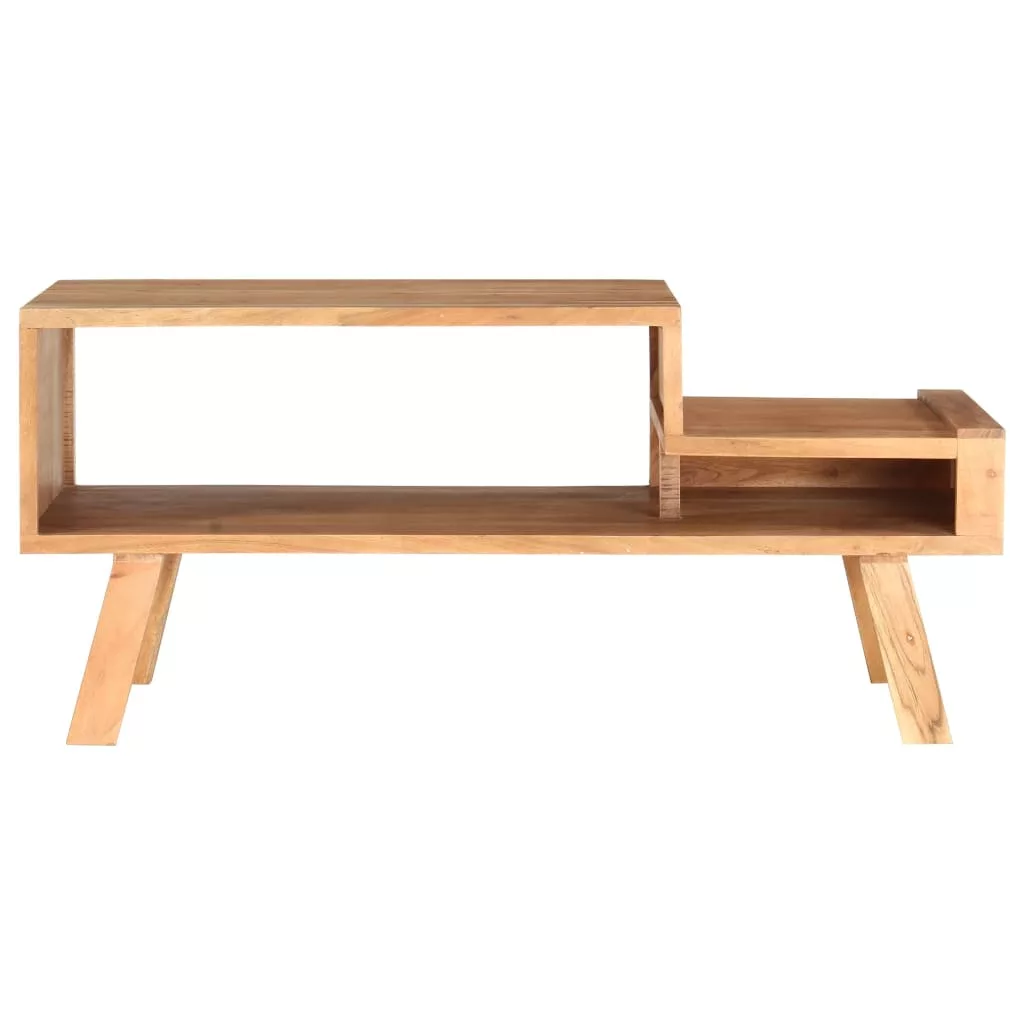 Ez a kanapé asztal kézzel készült tömör akácfából, így tartós és stabil. A tömör asztallapja biztonságos felületet biztosít italok, vázák, gyümölcsöstálak vagy dísztárgyak számára. Ezenkívül ez a praktikus dohányzóasztal a tárolórekeszének köszönhetően, amely tökéletes multimédiás készülékek, könyvek, magazinok vagy apróbb tárgyak kézközelben való tárolására, segít rendezetten tartani életterét. A megmunkálásnak és a fa gyönyörű erezetének köszönhetően minden bútordarab egyedi. Ez a nappali asztal könnyen összeszerelhető.