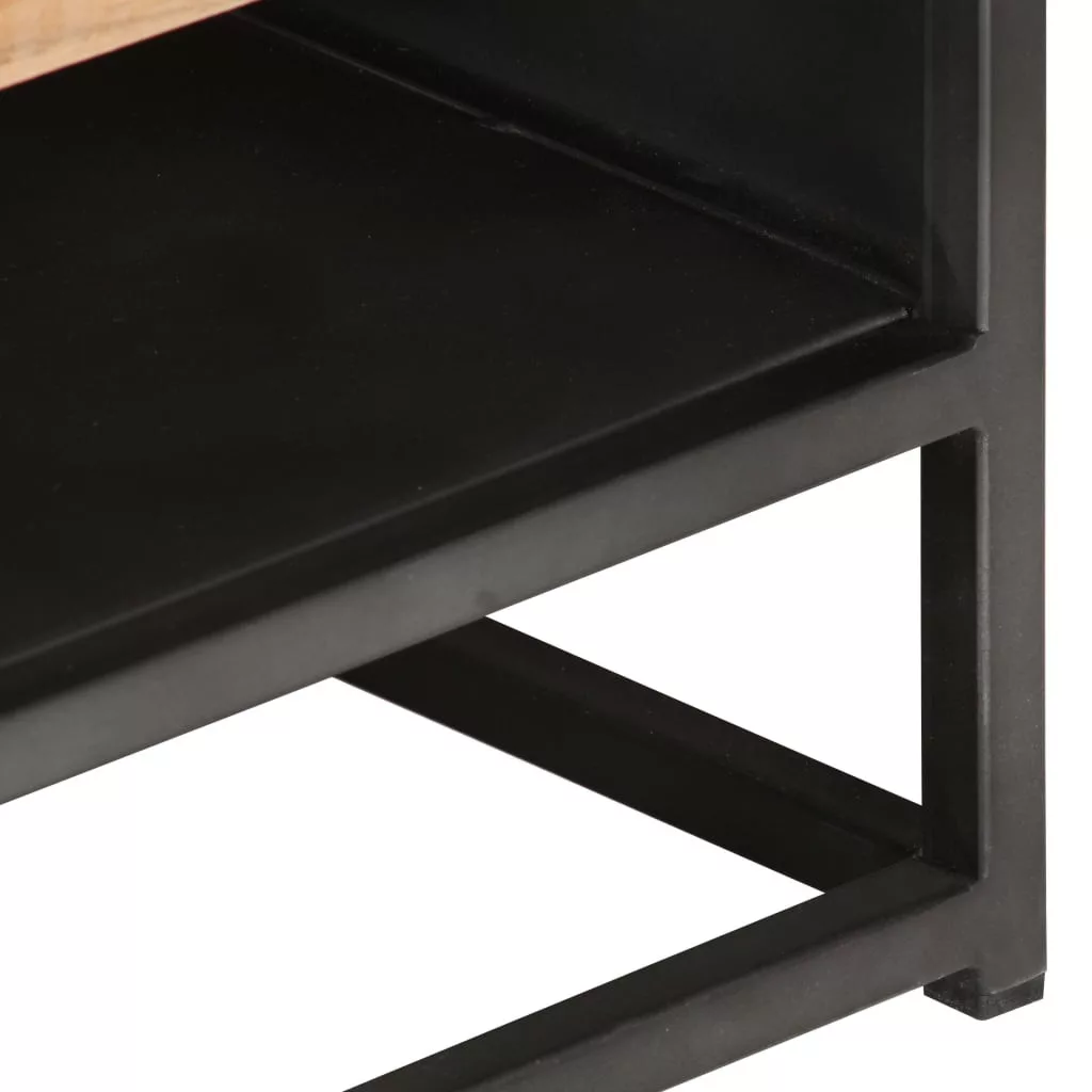 A kanapéasztal tömör akácfából, egy sűrű erezetű keményfából készült. A gyönyörű kialakítású dohányzóasztal stabil, tartós és szemet gyönyörködtető. A kifinomult kézműves munkának és a gyönyörű faerezetnek köszönhetően minden darab kissé különbözik a többitől. A porszórt acéllábak tovább növelik szilárdságát. Az asztal 2 nyitott rekesszel és 1 ajtóval rendelkezik, ahol magazinjait, könyveit stb. tárolhatja. Masszív asztallapjára italokat, ételeket és dísztárgyakat helyezhet.