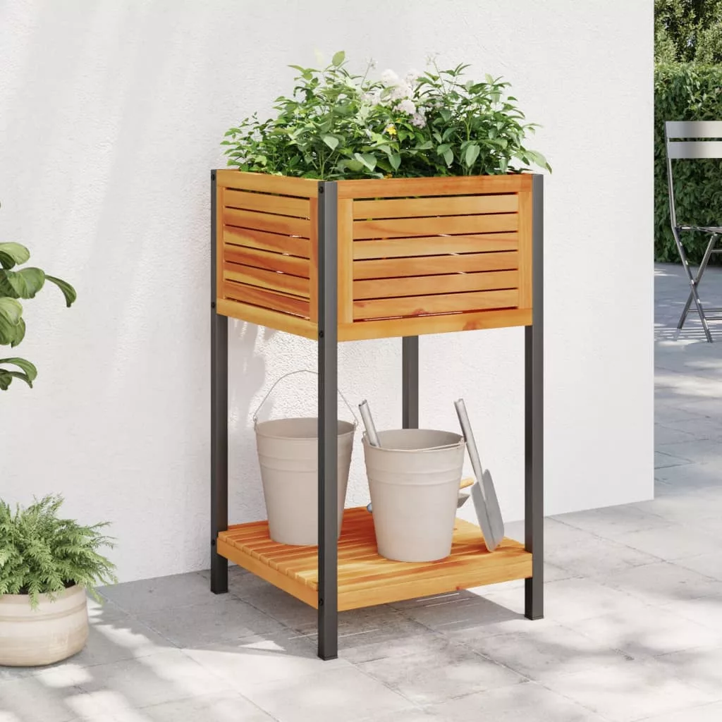 - Praktikus polc: A kerti növénytartó polccal lett ellátva, így könnyen elérhető helyen tárolhatja a virágföldet és a kerti kiegészítőket.