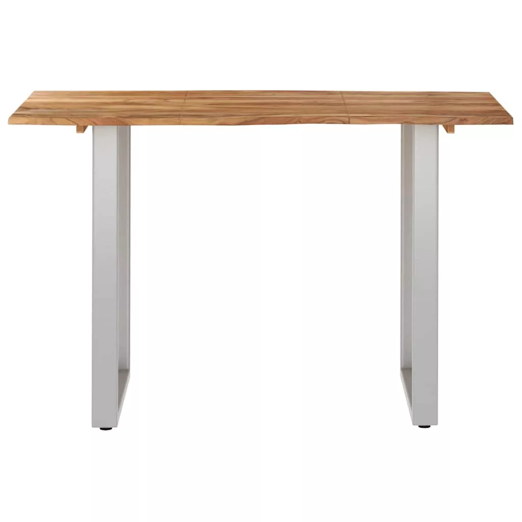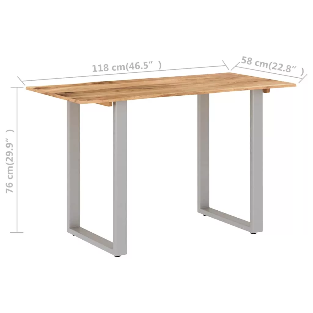 Ez az étkezőasztal tömör akácfából – egy trópusi keményfából készült –, mely robusztus és rostgazdag tulajdonságáról híres. Az asztallap életteli formája és élei szándékosan lettek ilyenre kialakítva, hogy a fa eredeti karakterét és természetes megjelenését enteriőrje lakberendezésébe csempészhesse! A készítési folyamat során minden egyes lépés a lehető legnagyobb gonddal lett elvégezve, legyen szó csiszolásról, festésről vagy lakkozásról. Az acéllábak hozzájárulnak az indusztriális megjelenéshez és az asztal masszív felépítéséhez.