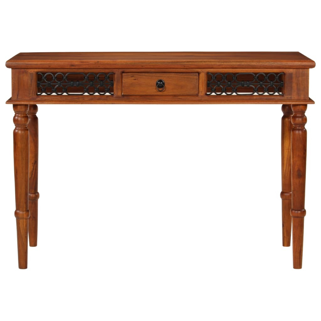 - Fém fogantyú és díszítések: A munkaasztal fém fogantyúval rendelkezik, amely megkönnyíti a fiók nyitását és csukását. Ezenkívül az oldalsó fémdíszek fokozzák az íróasztal esztétikai megjelenését.