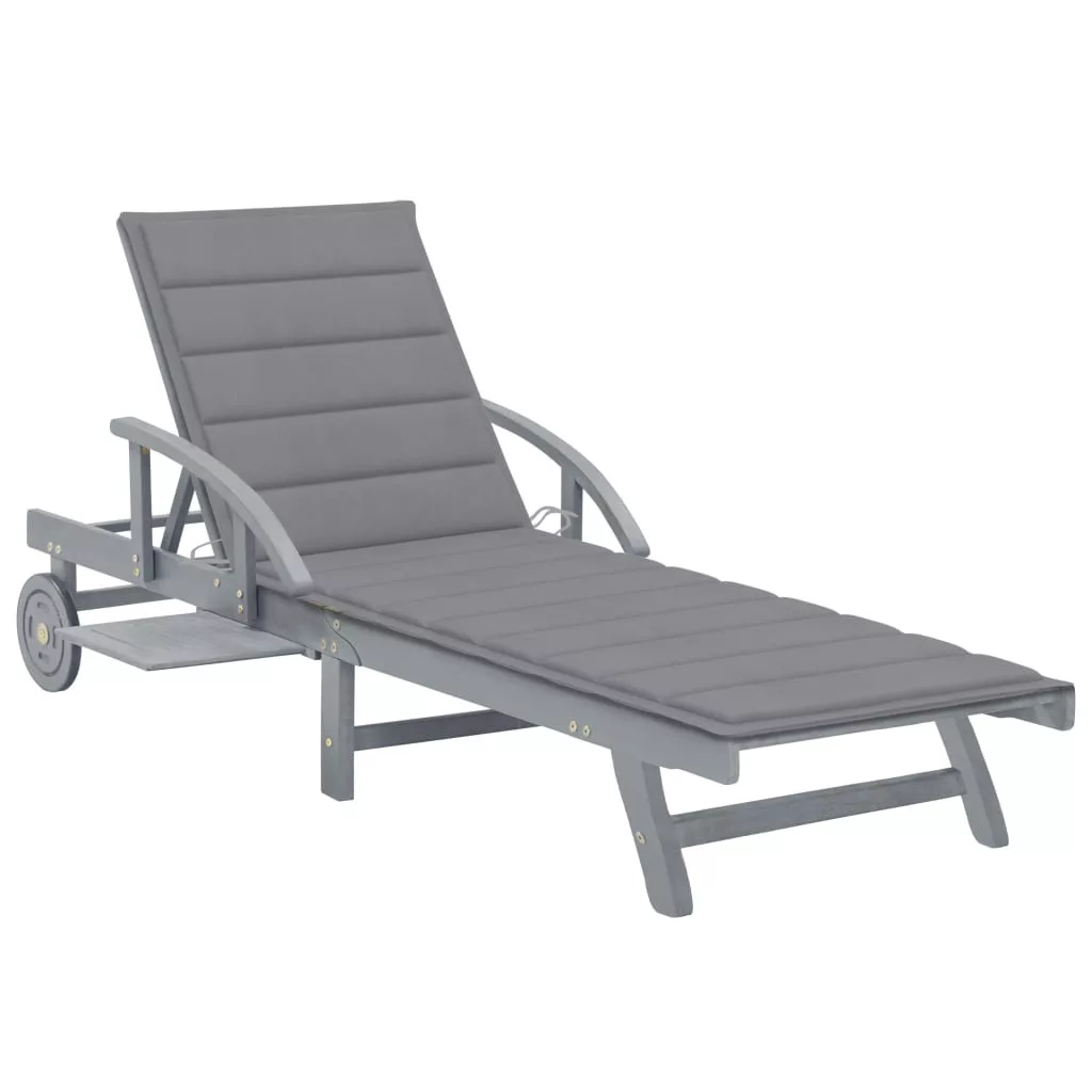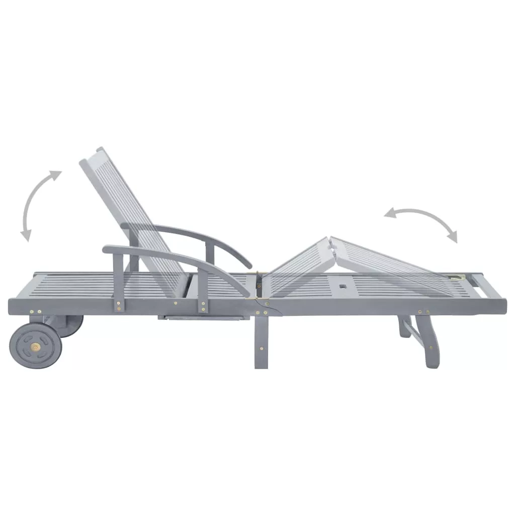 Ez a kültéri napozóágy szürke koptatott felületű tömör akácfából készült, így masszív és stabil. A háttámla és a lábtartó állítható, és a nyugágyat a kívánt helyzetben rögzítheti. Ez a kerti napágy a 2 kerekével könnyen mozgatható a ház körül. A napágy kényelmes kihúzható asztallal rendelkezik, amelyre telefonját, napszemüvegét, italát és egyéb apróságokat helyezhet. A párna extra kényelmet biztosít pihenés közben. Minden párna két kötélszettel van ellátva, hogy szorosan rögzíthesse őket a napozóágyon.