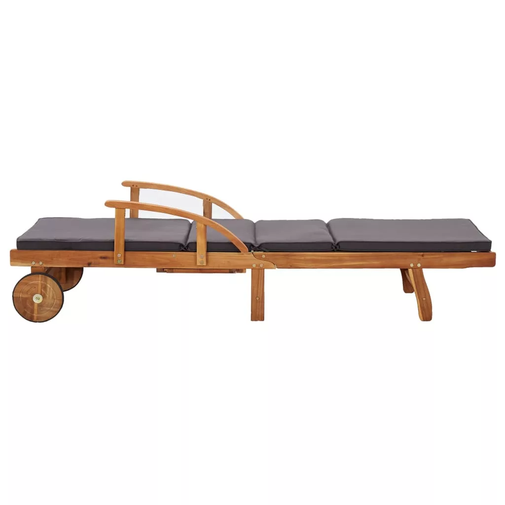 Ez a napozóágy strapabíró, tömör akácfából készült, amely természetes olajos bevonatot kapott, és kiváló időjárás-állóság jellemzi. Ezért napozóágyunk kiválóan alkalmas kültéri használatra. 2 kerekének köszönhetően könnyen mozgatható. A napozóágyhoz egy kihúzható asztal tartozik, amelyre letehető a telefon, a napszemüveg, az ital vagy egyéb kisebb tárgy.