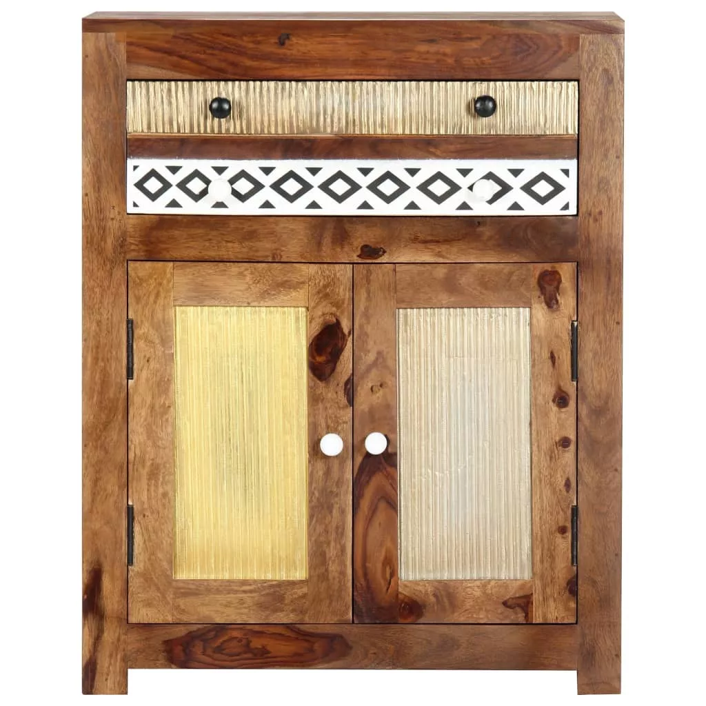 A tömör akácfából készült kisszekrény gyönyörű felülkezelést kapott: le lett csiszolva, festve és lakkozva, ennek köszönheti kifinomult megjelenését. A kelet-indiai rózsafa, más néven akácia vagy paliszander egy trópusi keményfa, amely gazdag erezetéről híres. A kifinomult kézműves munkának és a fa gyönyörű erezetének köszönhetően minden darab kissé különbözik a többitől. Ezenkívül a két fiók és az egy ajtós tárolórekesz bőséges tárolóhelyet biztosít a kisebb tárgyak rendezett és elérhető közelségben tartásához. A fa szekrény összeszerelése egyszerű, és nedves ruhával könnyen tisztítható. Tegye szebbé otthonát elegáns komódunkkal!