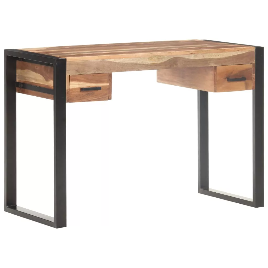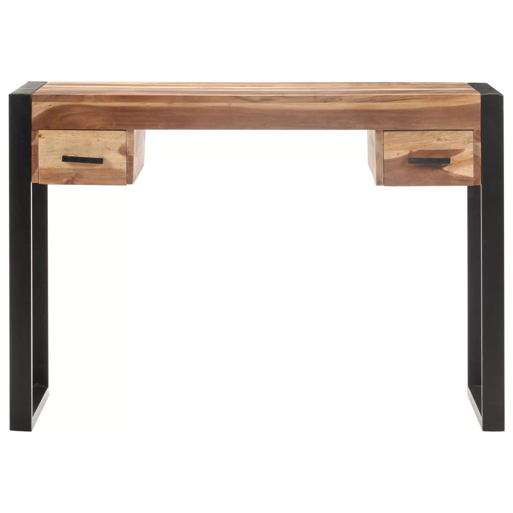 Ez a tömör akác- és gumifából készült, vintage stílusú íróasztal időtálló kiegészítője lesz otthonának. A kivitelezés minden lépését a legnagyobb gondossággal jellemzi, legyen az a polírozás, a festés vagy a lakkozás. Az íróasztal erős és tartós az erős acélváznak köszönhetően. Az asztallap stabil és biztonságos felületet biztosít italok, gyümölcsöskosarak, váza vagy egyéb dekorációs tárgyak számára. Két fiókkal rendelkezik, amelyek elegendő helyet biztosítanak apró tárgyak, például kulcsok és noteszek tárolására. Az íróasztal használható számítógép asztalként, munkaasztalként, irodai asztalként, olvasóasztalként, tanulóasztalként stb. Használható tálalóként vagy konzolasztalként is.