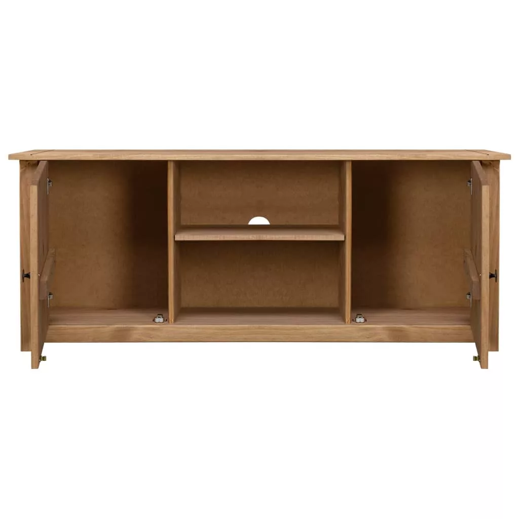 Ez a tömör fenyőfából készült TV-állvány rendkívül erős és tartós. Elegáns kialakításának köszönhetően a komód felhasználóbarát és rendkívül otthona dekoratív kiegészítője lesz. A sztereó szekrény 2 ajtóval és 2 rekesszel rendelkezik, amelyek elegendő helyet biztosítanak mindenféle kisebb tárgy, például kulcsok, jegyzettömbök, tollak és egyéb apróságok rendezetten és elérhető közelségben való tartásához. Ezenkívül a nagy felső része ideális TV, router, multimédiás készülékek elhelyezésére vagy dísztárgyak megjelenítésére.