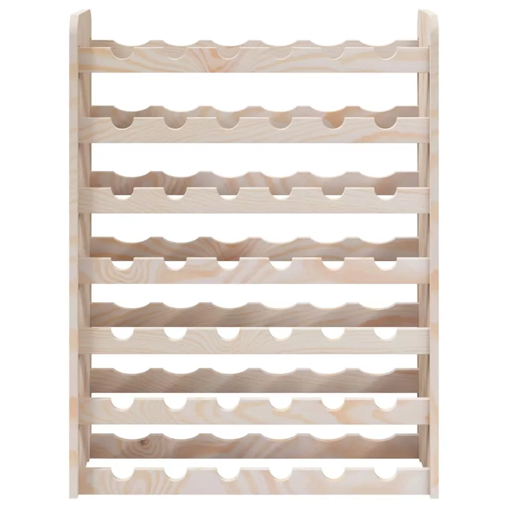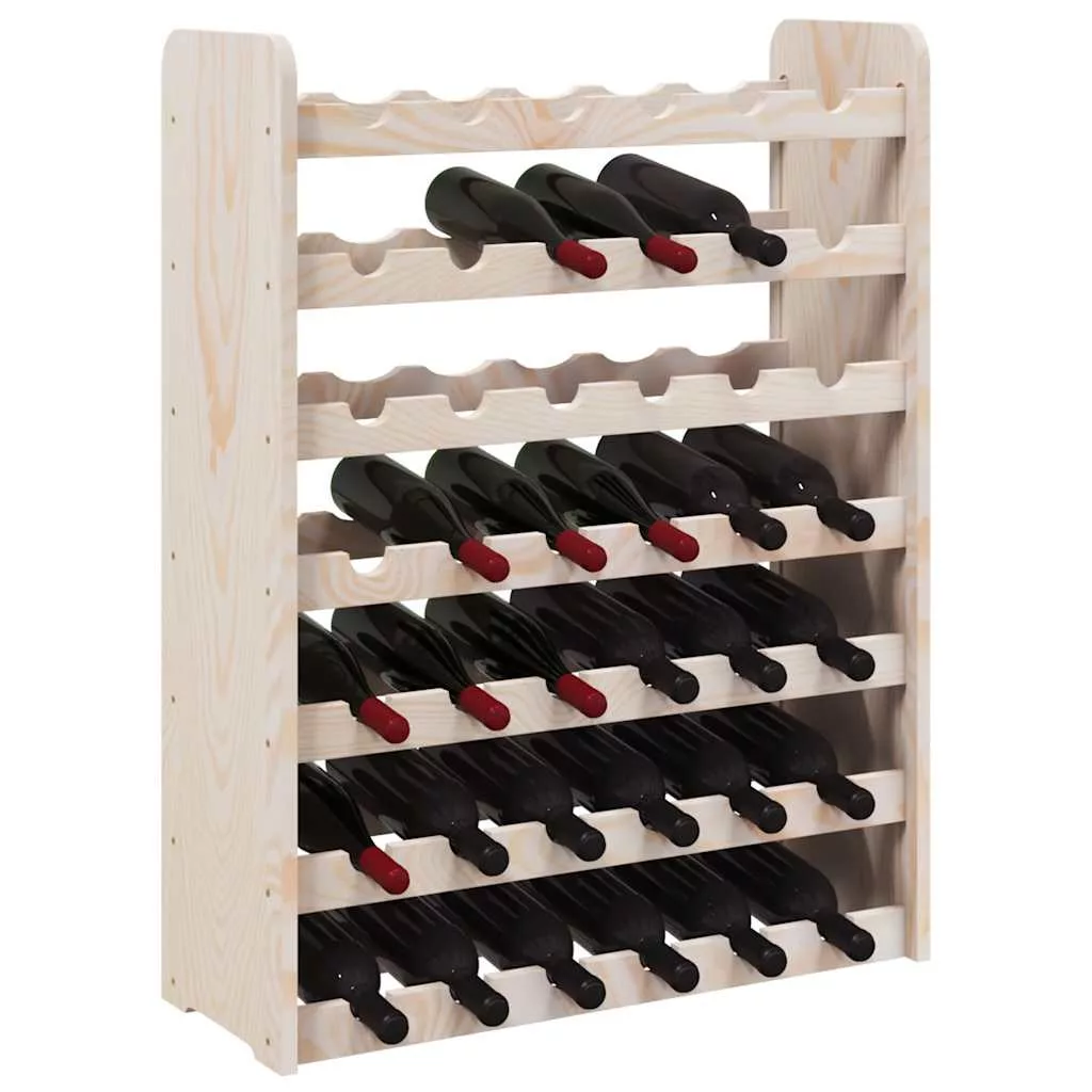 - Tömör fenyőfa: Ez a borospolc tömör fenyőfából készült. A tömör fenyőfa egy gyönyörű, természetes anyag. A fenyőfa egyenes erezetű, a csomók pedig jellegzetes, rusztikus megjelenést biztosítanak az anyagnak.