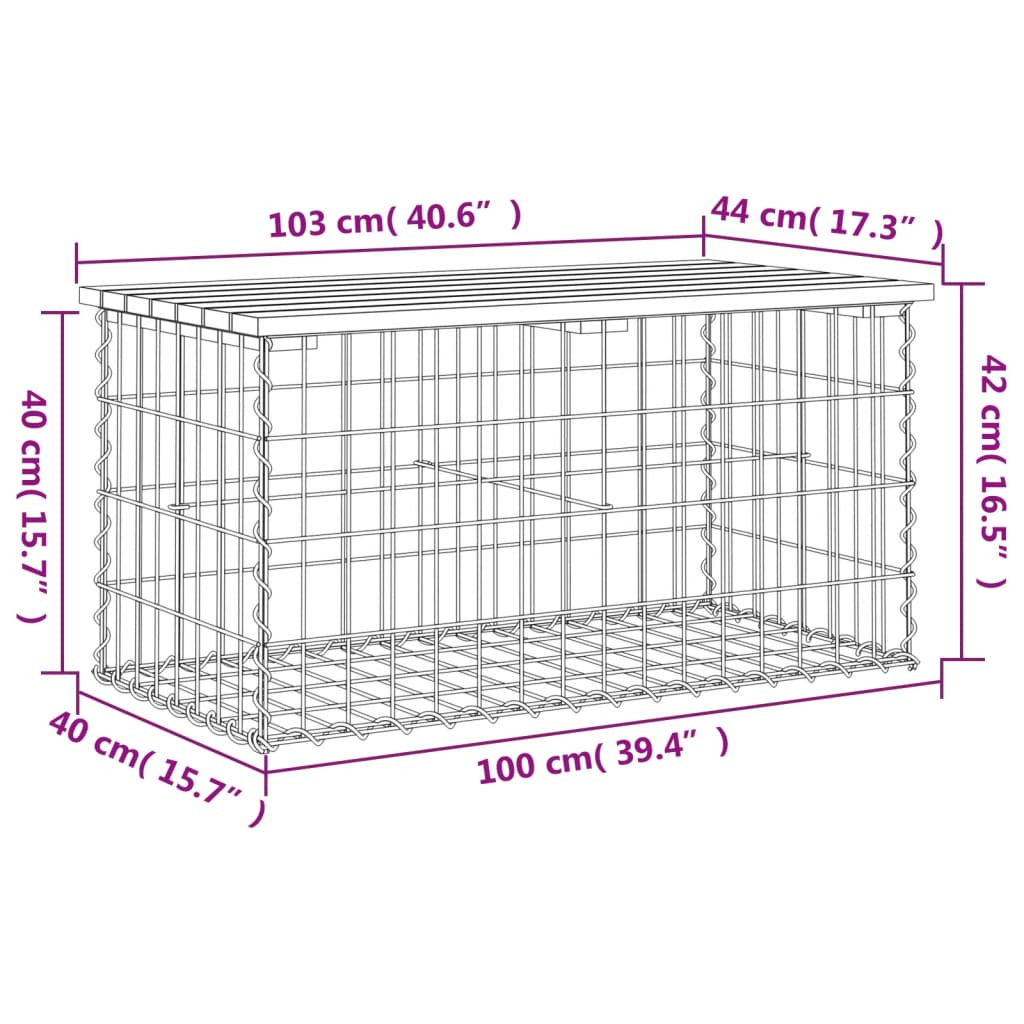 - Masszív és stabil alap: Ez a kültéri pad horganyzott acél gabionkosaras alappal rendelkezik, amelyet úgy terveztek, hogy a szépség fokozása érdekében kövekkel és kavicsokkal töltsék fel. A rács az extra stabilitás érdekében minden metszéspontjánál kereszt- és hosszanti irányú hegesztésekkel van megerősítve.