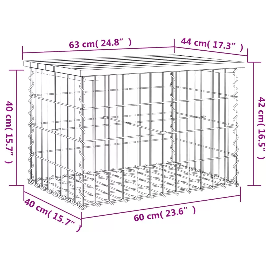 - Masszív és stabil alap: Ez a kültéri pad horganyzott acél gabionkosaras alappal rendelkezik, amelyet úgy terveztek, hogy a szépség fokozása érdekében kövekkel és kavicsokkal töltsék fel. A rács az extra stabilitás érdekében minden metszéspontjánál kereszt- és hosszanti irányú hegesztésekkel van megerősítve.