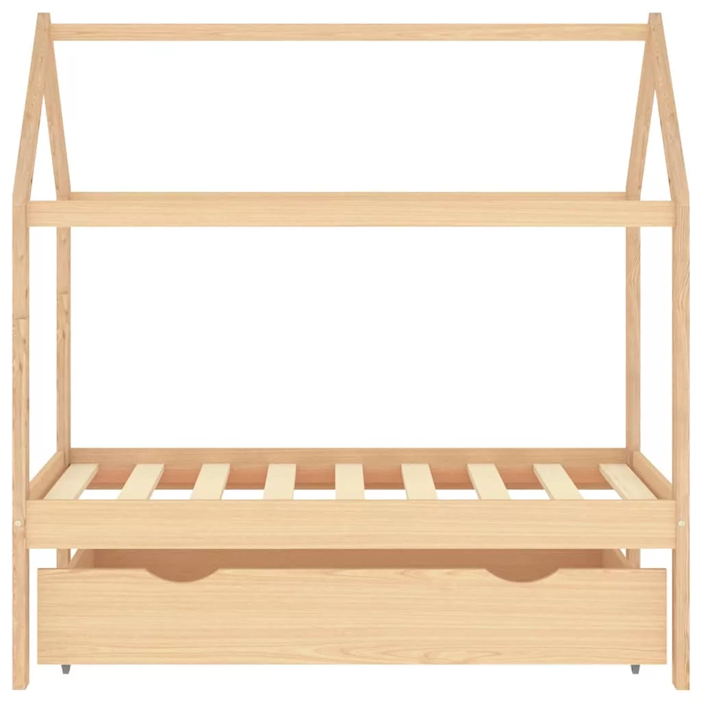 Az ágy okosan megtervezett, faház stílusú kerettel rendelkezik, ahová ágyfüggönyöket akaszthat, hogy magánéletet teremtsen gyermeke számára. Olvasókönyvként vagy játszóházként is használható. Tömör fenyőfából készült, ez az ágykeret rendkívül masszív és tartós. Az erős lécek biztosítják a szükséges tartást és nagyon kényelmesek. A mellékelt, 2 fogantyúval ellátott ágyfiók bőséges tárolóhelyet biztosít összehajtott ruhák, játékok stb. tárolására, így a szoba tiszta és rendezett marad. A könnyen gördülő kerekek szőnyegpadlón és fa padlón is használhatók. Ez az ágykeret 70 x 140 cm-es matrachoz alkalmas.