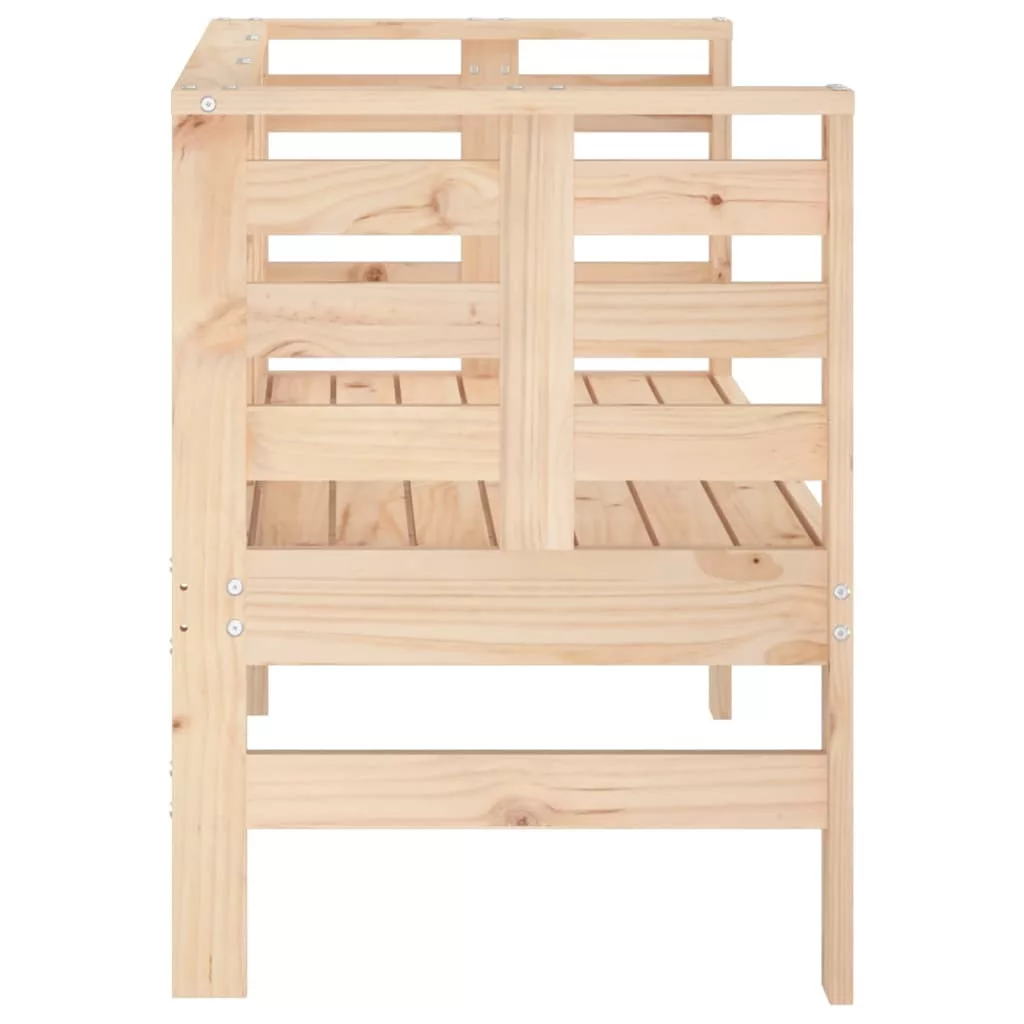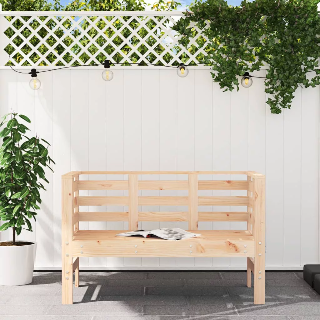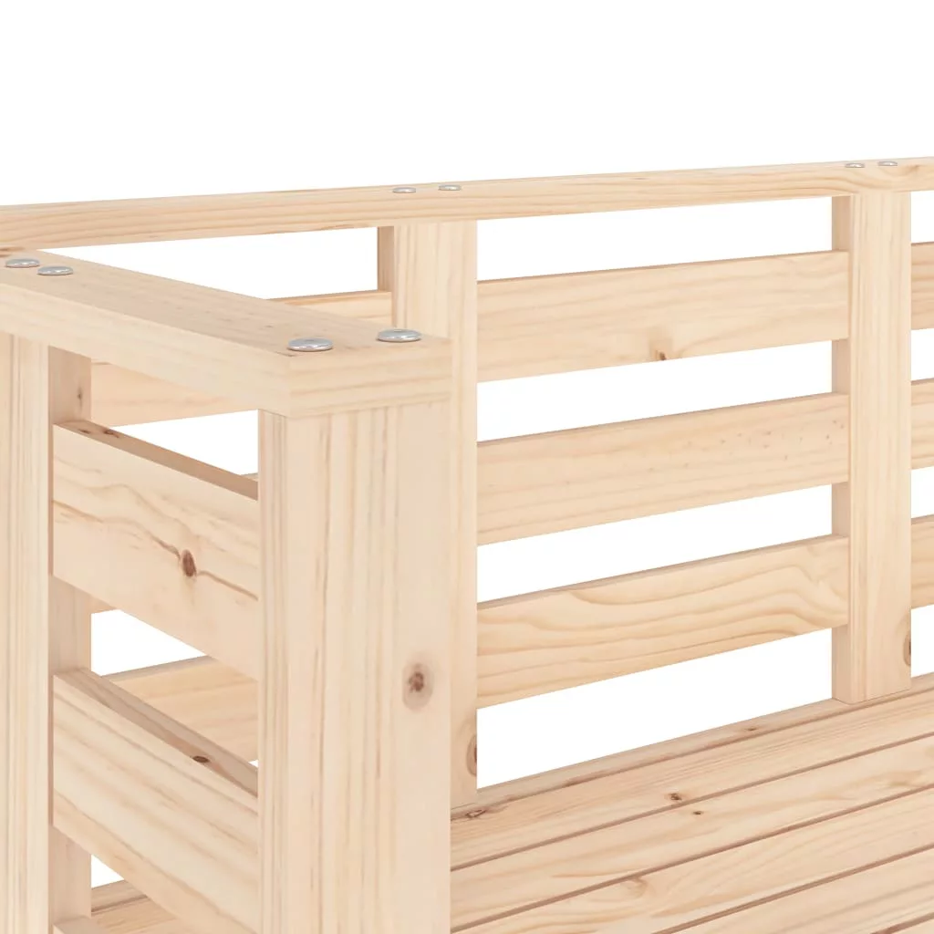 - Tömör fenyőfa: A kültéri pad a szilárdság és a stabilitás érdekében tömör fenyőfából készült. A tömör fenyőfa egy gyönyörű, természetes anyag. A fenyőfa egyenes erezetű, a csomók adják az anyag jellegzetes, rusztikus megjelenését.