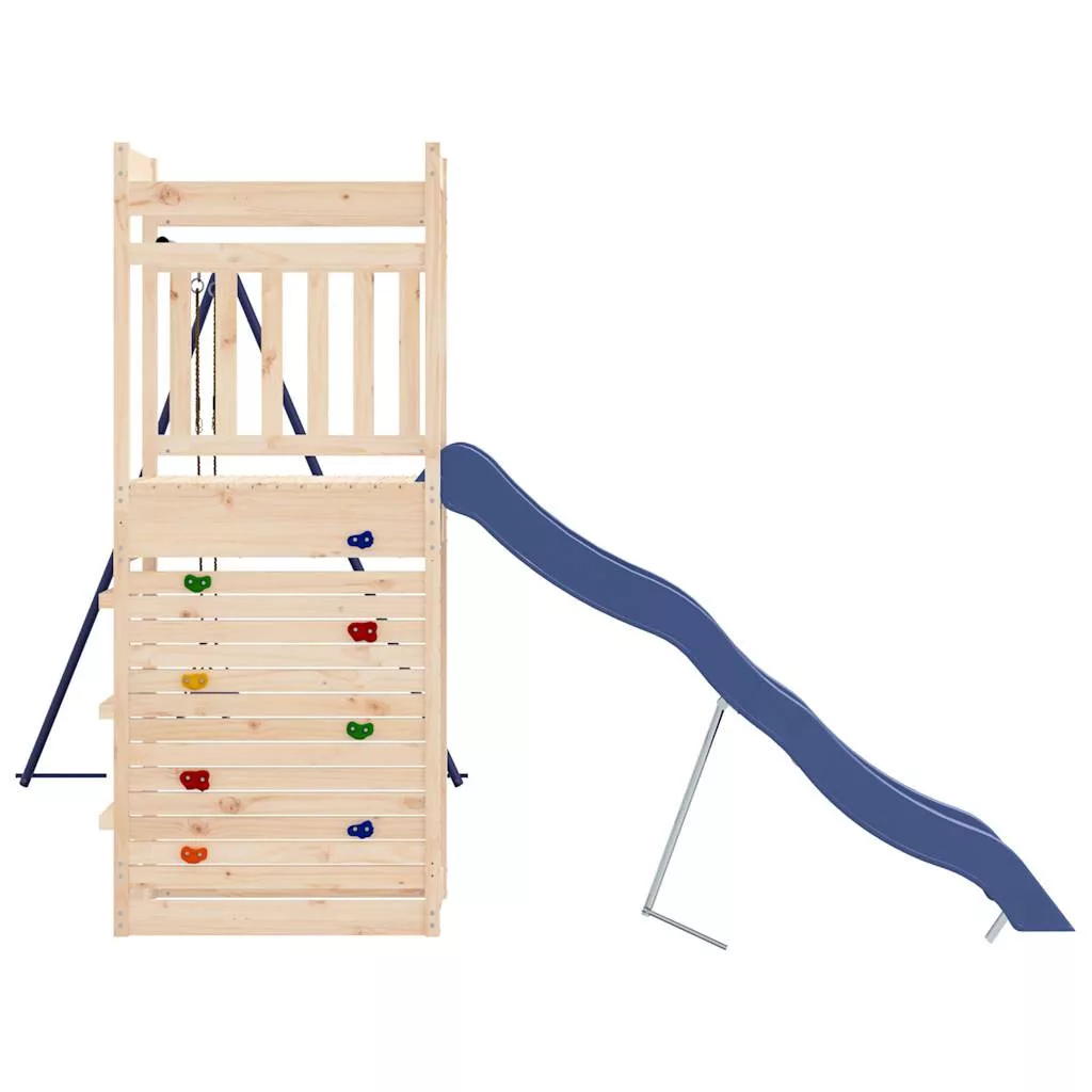 - Tartós anyag: Ez a játszószett tömör fenyőfából készült. A tömör fenyőfa egy gyönyörű, természetes anyag. A fenyőfa egyenes erezetű, a csomók pedig jellegzetes, rusztikus megjelenést biztosítanak az anyagnak.