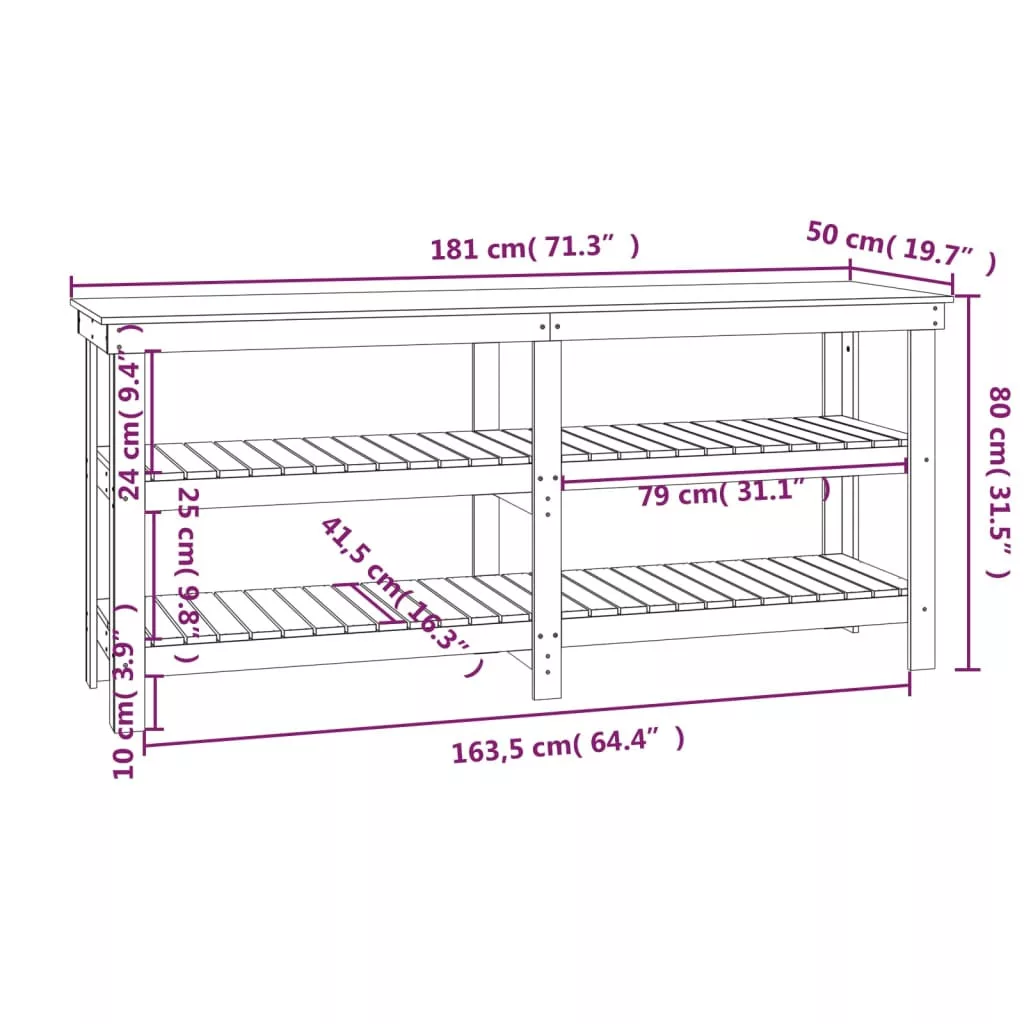 vidaXL tömör fenyőfa munkapad 181 x 50 x 80 cm