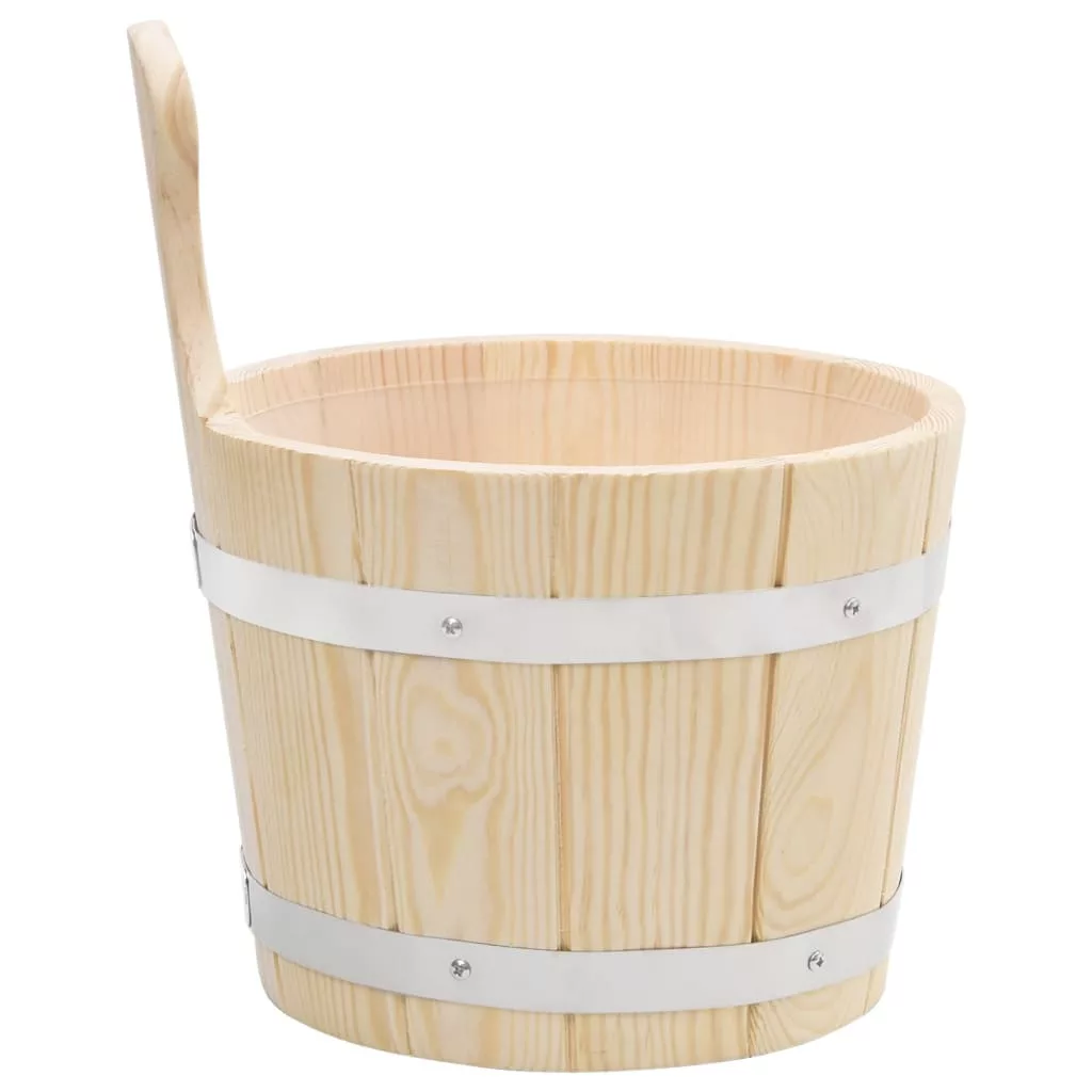 Ez az egyszerű, de praktikus fa szaunavödör és -merítőkanál még pihentetőbb és élvezetesebb szaunázást biztosít.