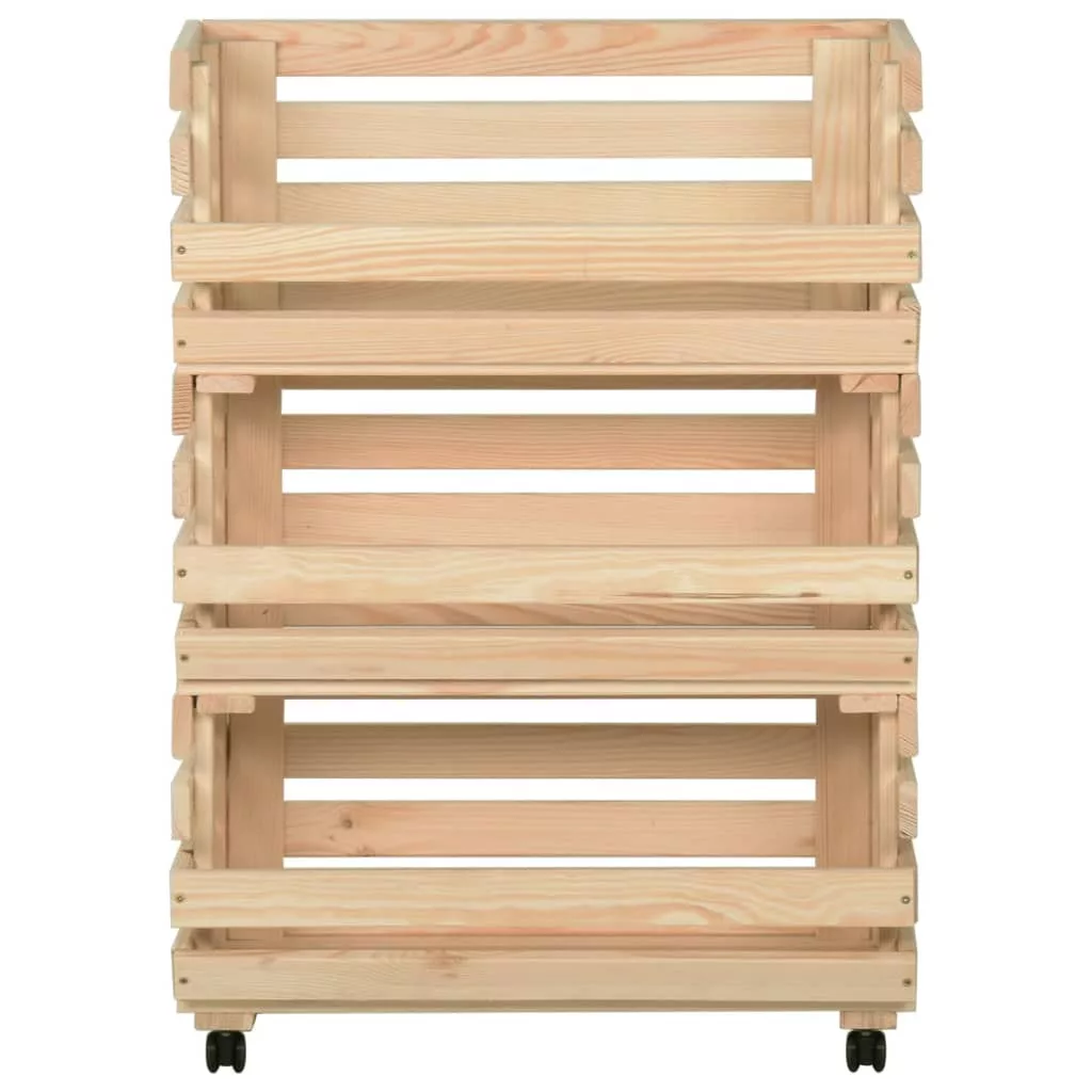 Ez a gyümölcsláda tömör fenyőfából készült, így stabil és tartós. A tárolókocsi 3 rekesszel rendelkezik, amelyekben kézközelben tarthatja az élelmiszereket, a palackokat és más alapvető dolgokat. A levehető kialakításnak köszönhetően minden polcot igény szerint külön-külön használhat. Emellett a zsúrkocsi rugalmas kerekekkel van felszerelve a könnyű helyzetváltoztatás érdekében.