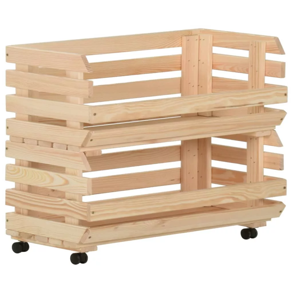 Ez a gyümölcsláda tömör fenyőfából készült, így stabil és tartós. A tárolókocsi 3 rekesszel rendelkezik, amelyekben kézközelben tarthatja az élelmiszereket, a palackokat és más alapvető dolgokat. A levehető kialakításnak köszönhetően minden polcot igény szerint külön-külön használhat. Emellett a zsúrkocsi rugalmas kerekekkel van felszerelve a könnyű helyzetváltoztatás érdekében.