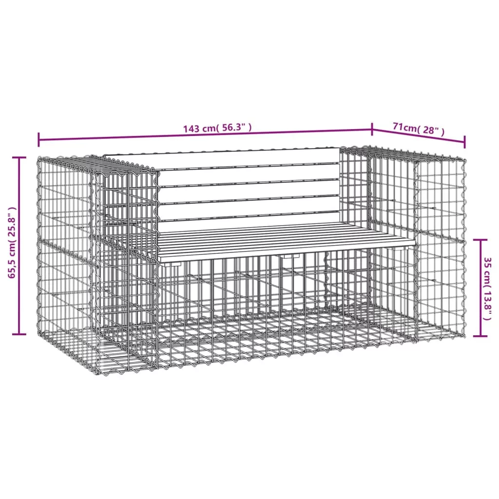 - Masszív és stabil alap: Ez a kültéri pad horganyzott acél gabionkosaras alappal rendelkezik, amelyet úgy terveztek, hogy a szépség fokozása érdekében kövekkel és kavicsokkal töltsék fel. A rács az extra stabilitás érdekében minden metszéspontjánál kereszt- és hosszanti irányú hegesztésekkel van megerősítve.