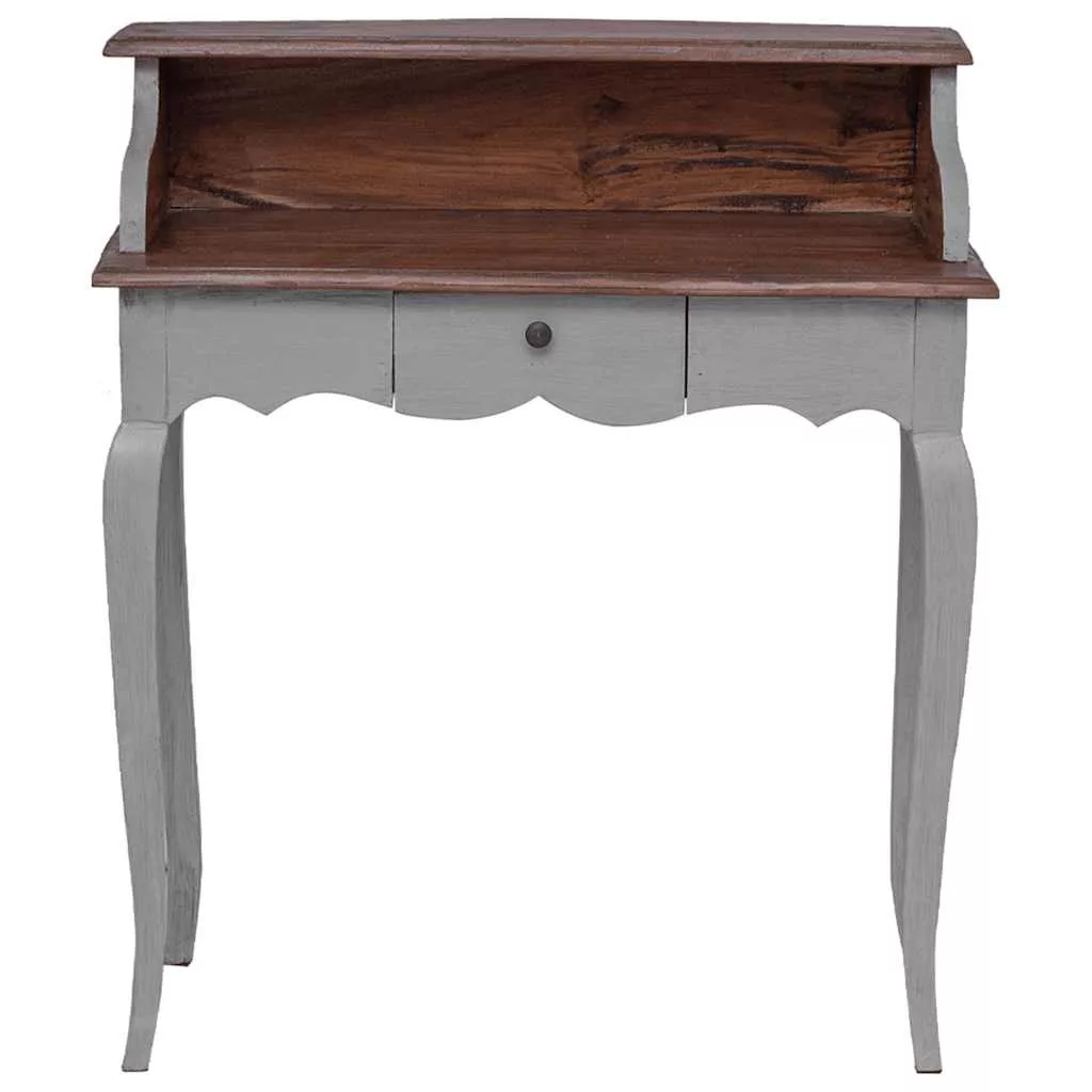 Ez az antik stílusban pompázó íróasztal elegáns külsőjével kifinomult kiegészítője lehet bármely otthon berendezésének.