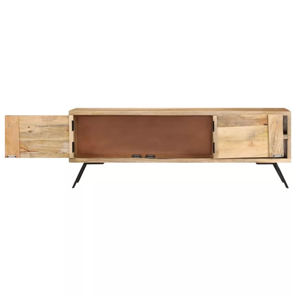 A tévéállvány tömör mangófából, egy trópusi keményfából készült, amely kellő teherbírással rendelkezik. Emellett ellenáll az idő okozta kopásnak is, így stabil és tartós. A masszív stabil teteje ideális a TV és a hifirendszer, illetve az olyan dísztárgyak, mint a vázák vagy a cserepes növények elhelyezésére. Ez a komód bőséges tárolóhelyet biztosít DVD-lejátszóinak, játékkonzoljainak, streaming eszközeinek, médiahordozóinak stb. rendezett tárolásához. A dekoratív elemek extra bájt kölcsönöznek a komód rusztikus bájához.