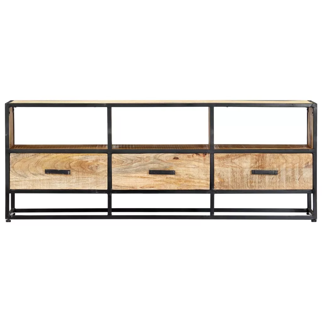 Ha a rusztikus és az ipari báj egyszerű vonásait keresi belső dekorációjához, tömör fából készült TV-szekrényünk tökéletes megoldás lesz. Ez a TV-állvány 3 fiókkal és 3 polccal lett felszerelve különféle tárgyak számára, így minden bizonnyal praktikus és szemet gyönyörködtető kiegészítője lesz otthonának.